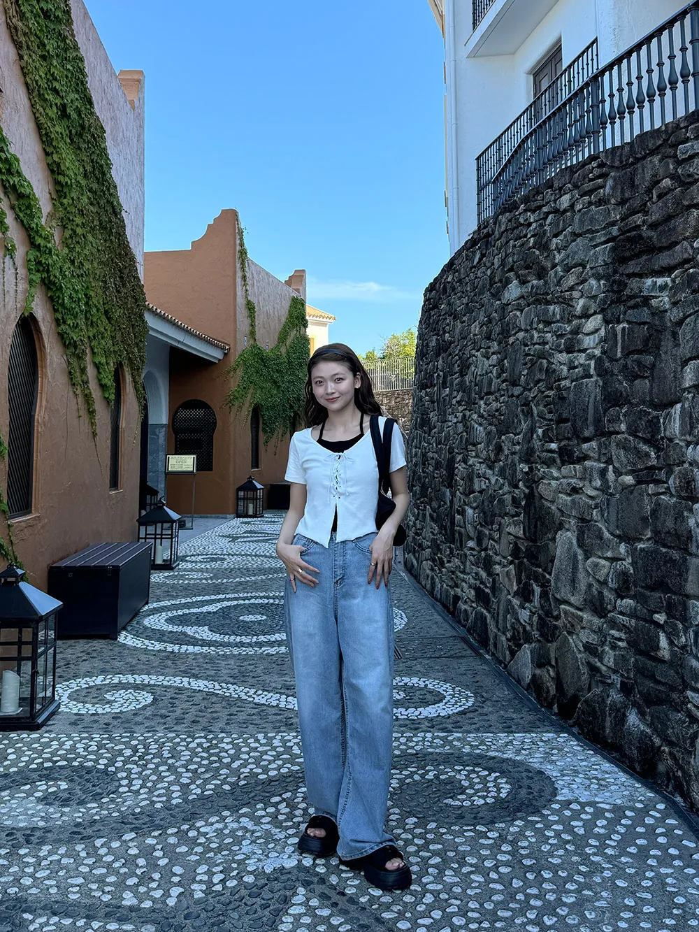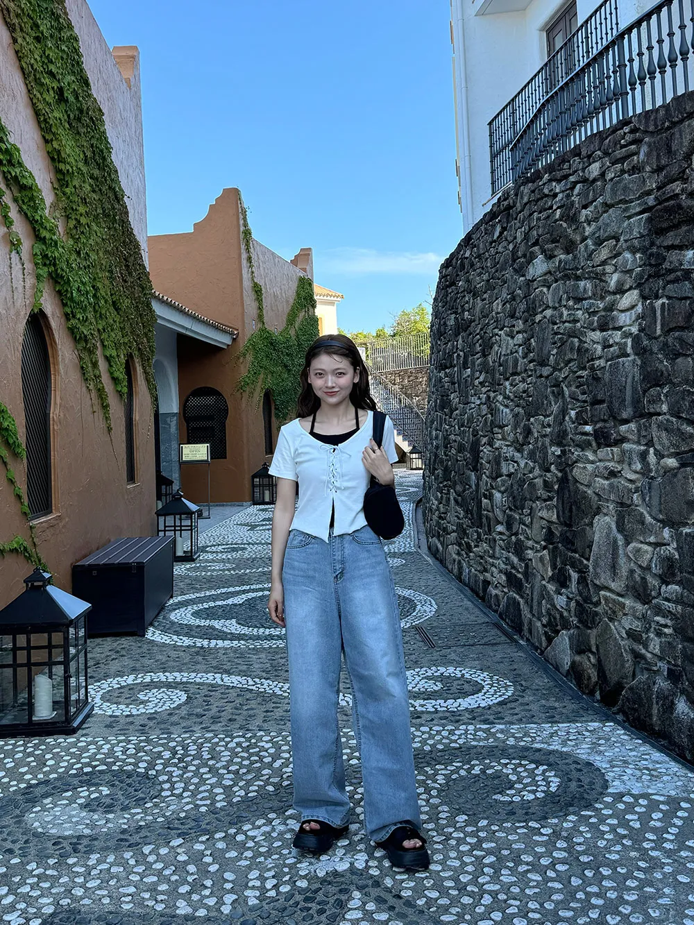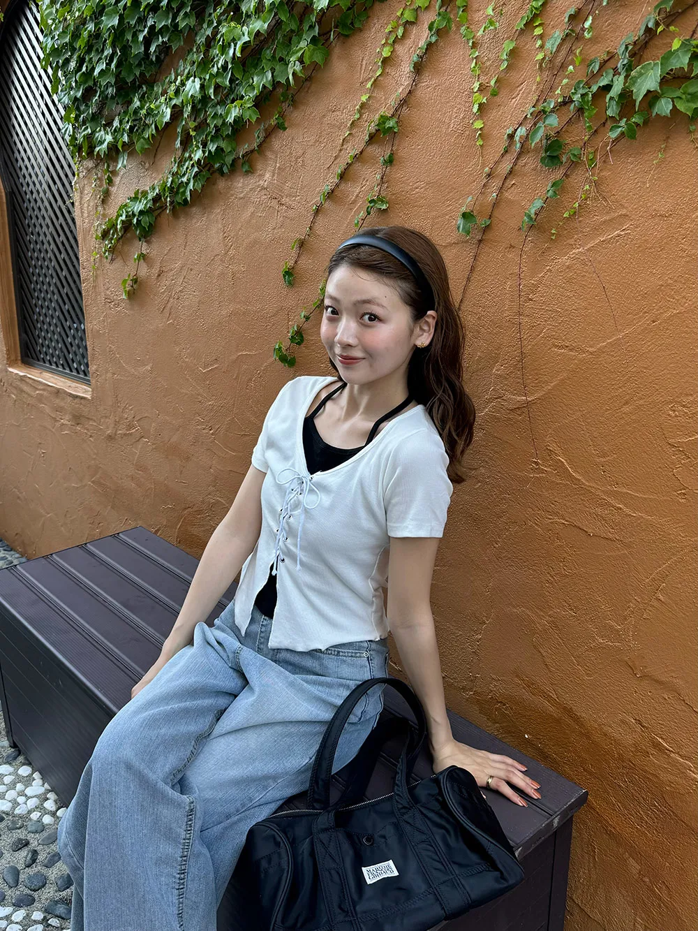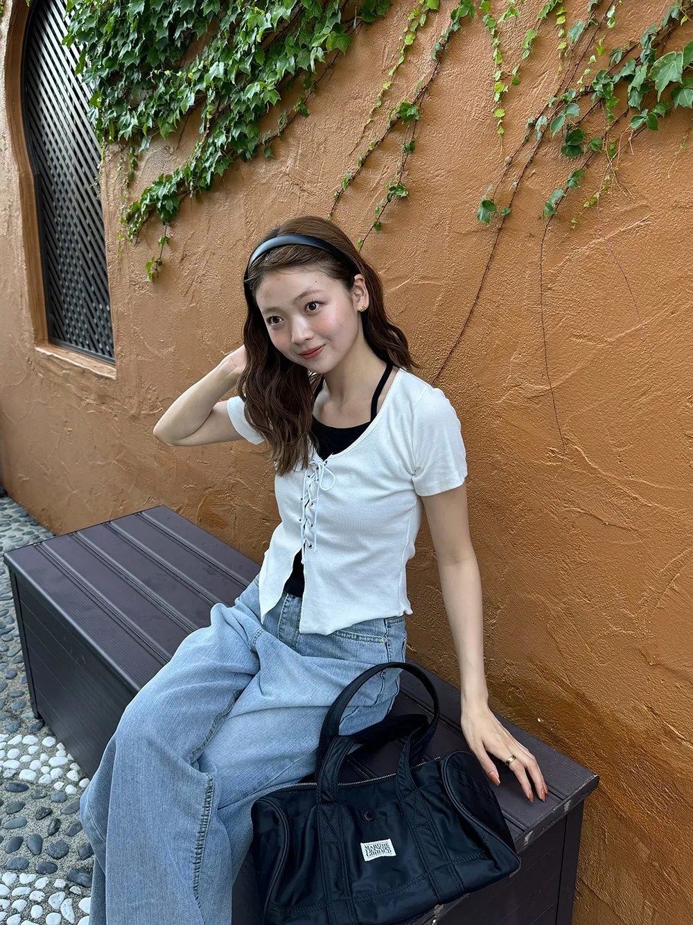 キャミソールとレースアップデザインの