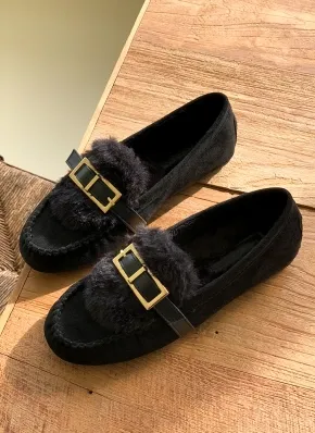 ファー裏地スエード調ウンドトゥローファー