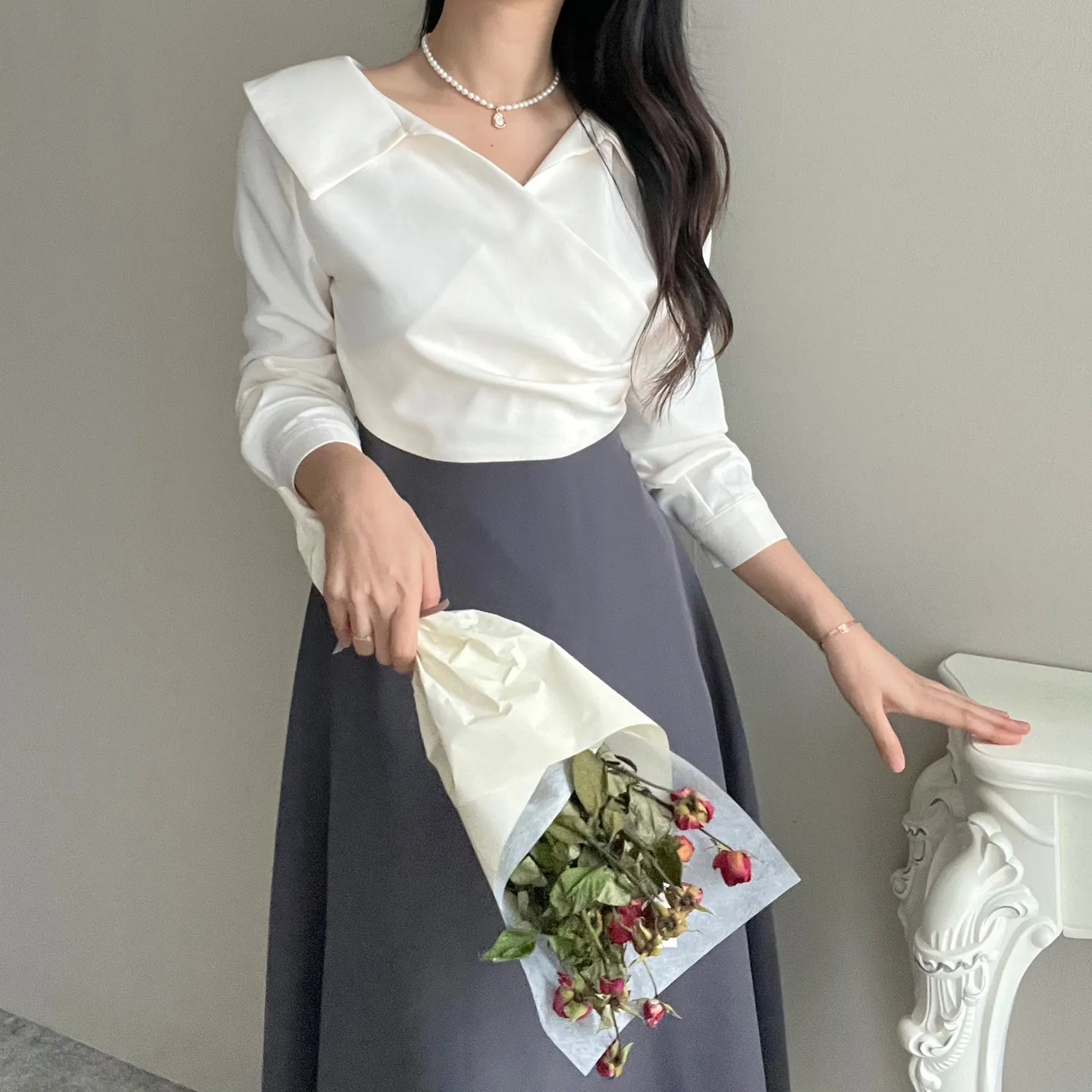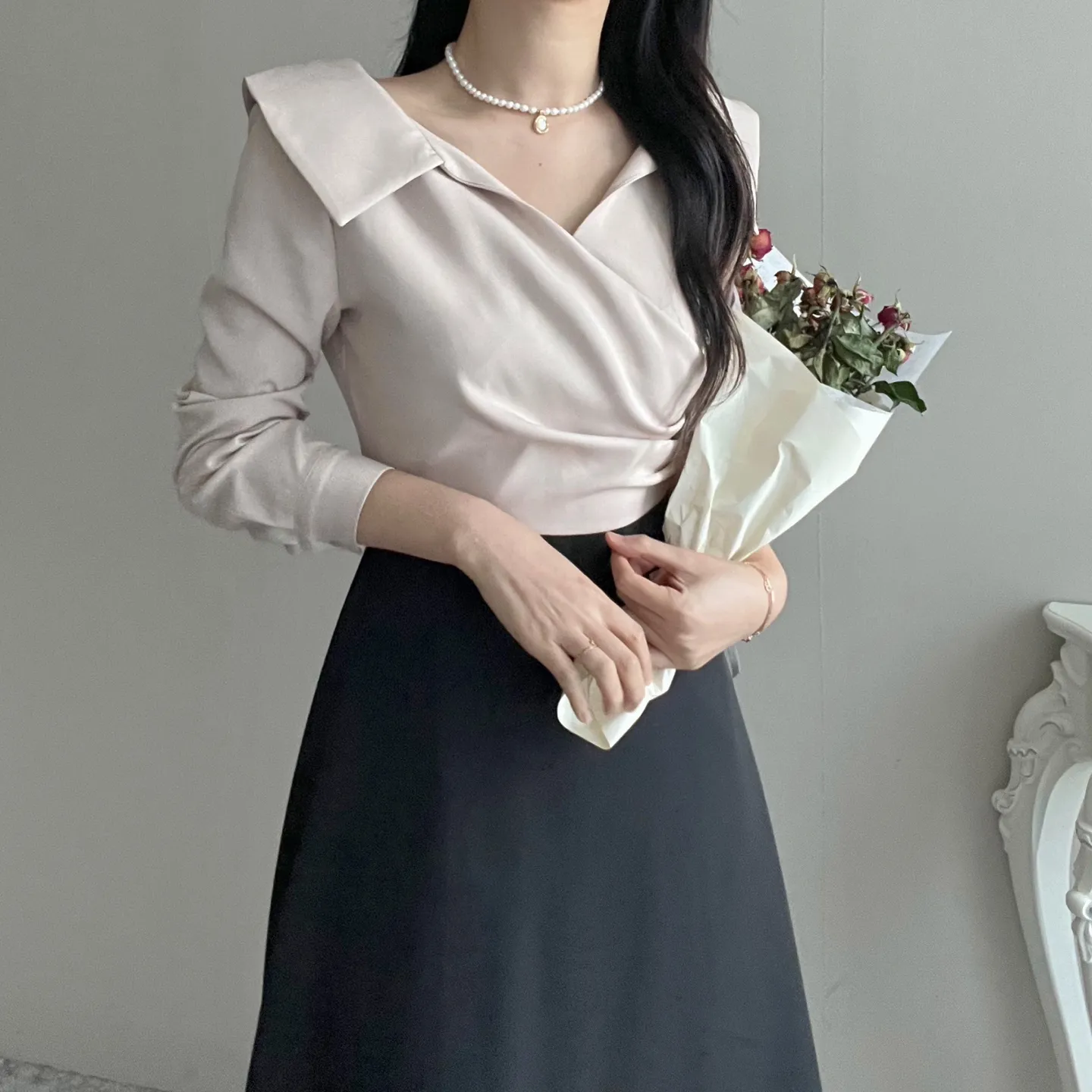オープンカラーカシュクールマーメイドワンピース