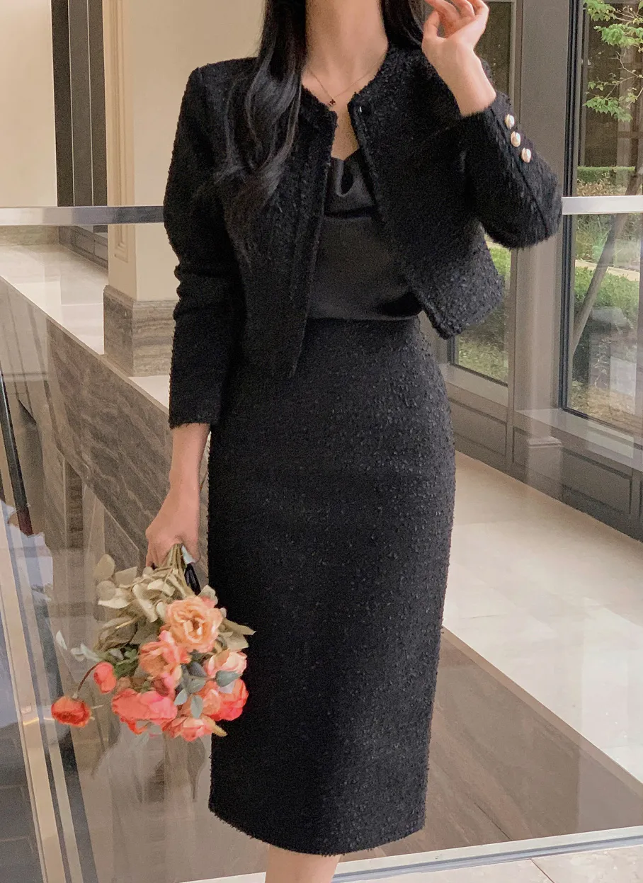 カラークロップドロングAラインフレアボタンスリーブジップアップパフスリーブ肩パッドスナップボタンパール調ボタン無地ツーピース(トップス、ボトムス)スカートジャケットジャケット