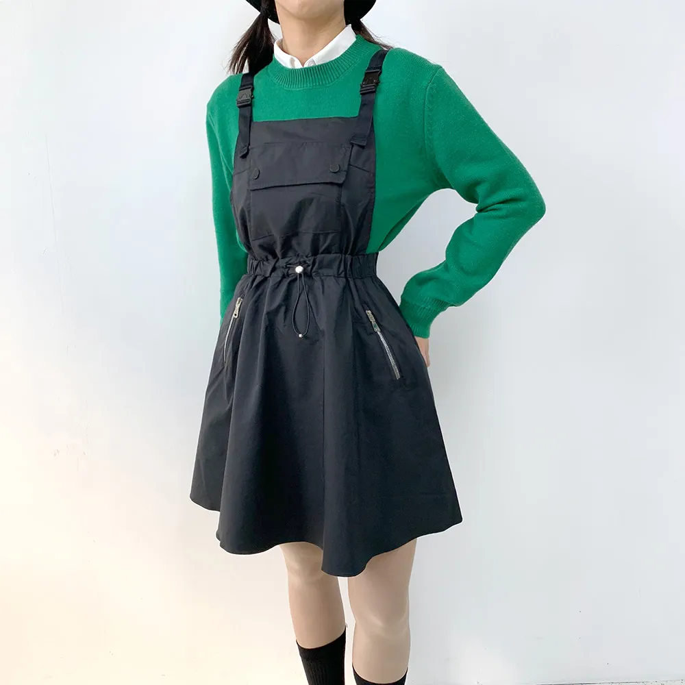 カラージップアップドローコードカラーワンピース