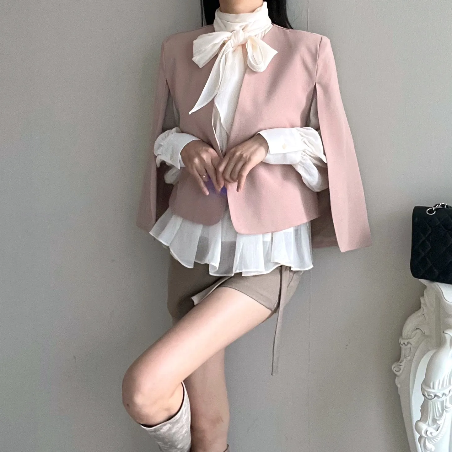 バイカラーボウタイブラウス