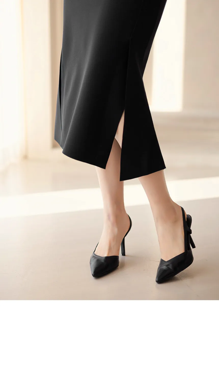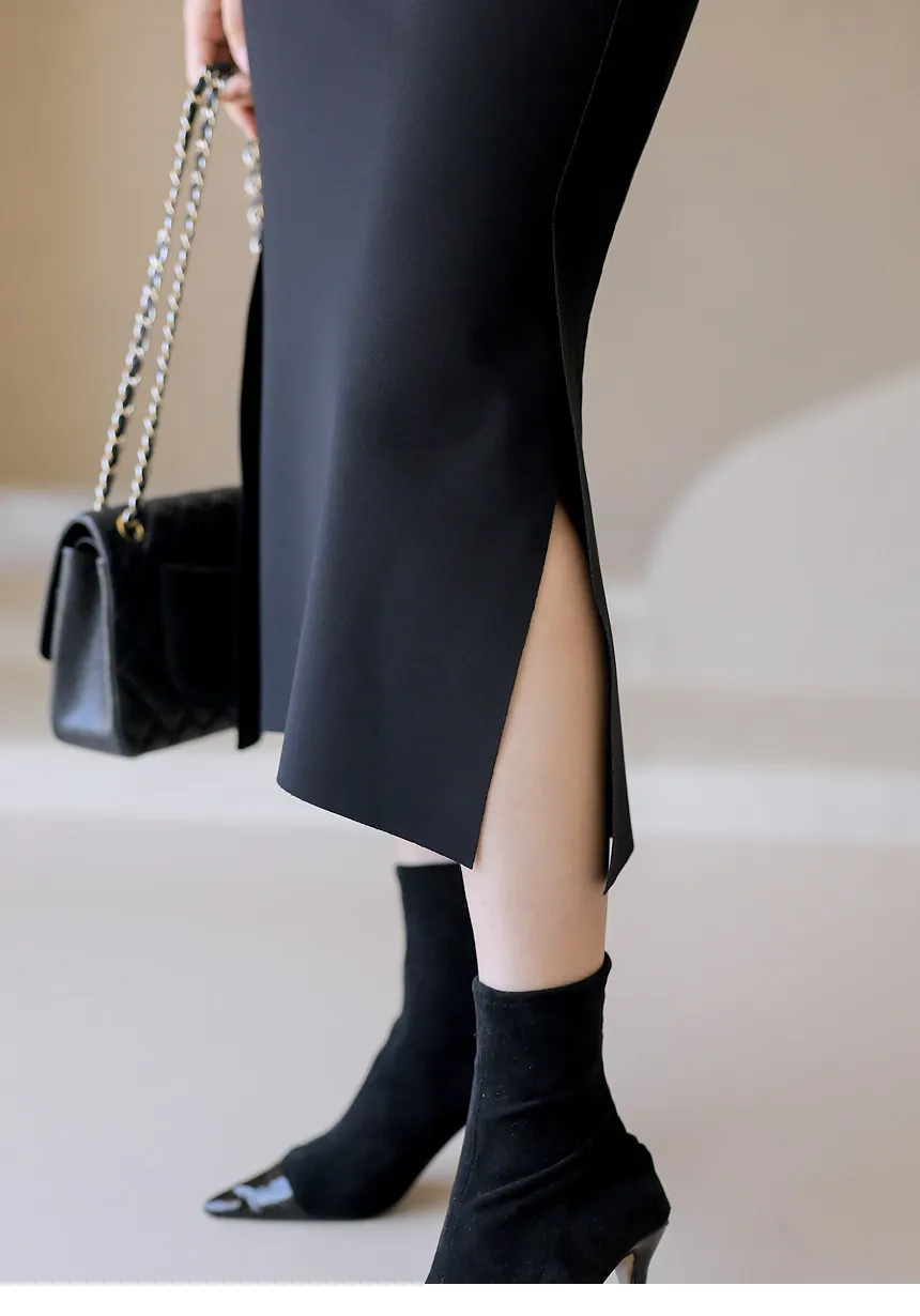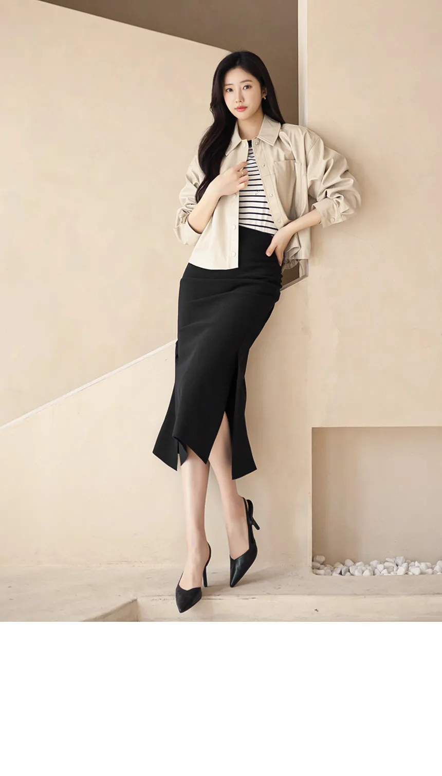 ウエストからスリムに掴みアンバランススリットで