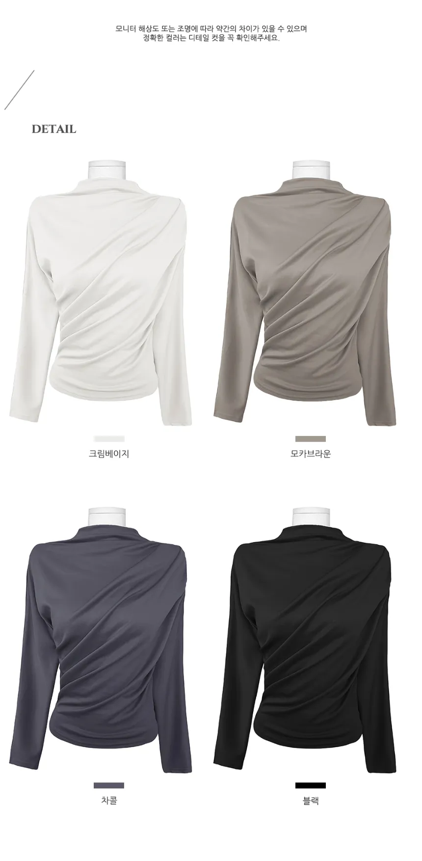 着るだけで高級感溢れるモックネックドレープ長袖Tシャツ。