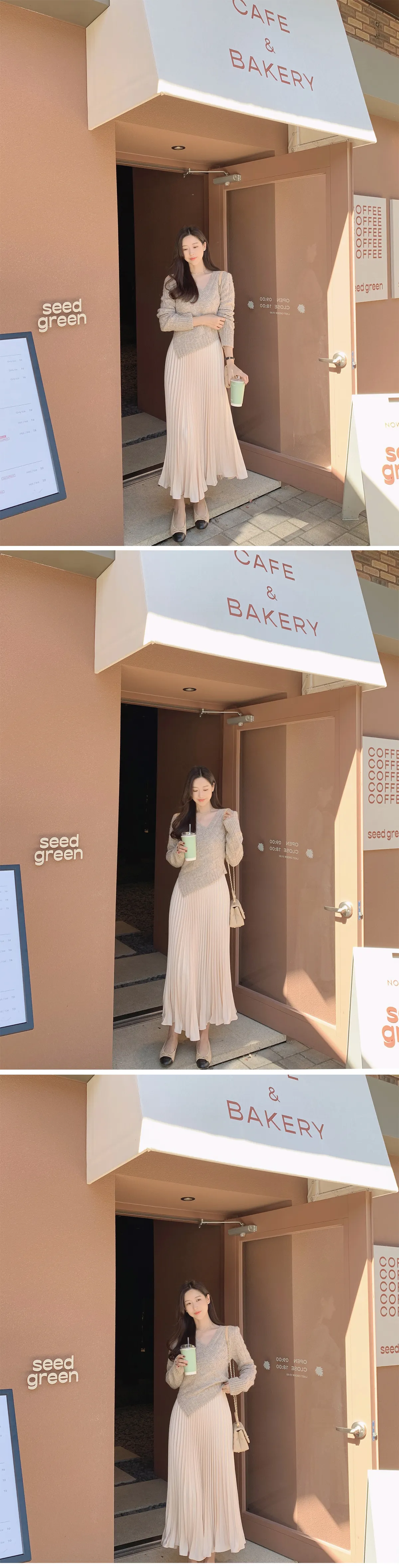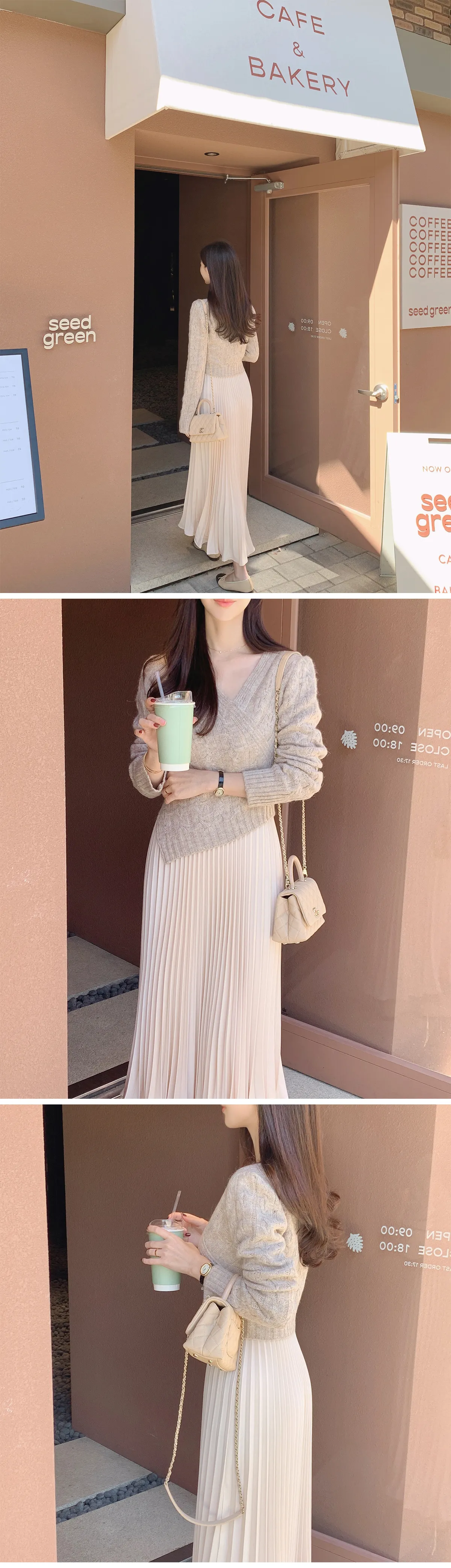 メランジケーブルのベージュニットと合わせた