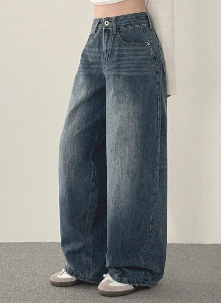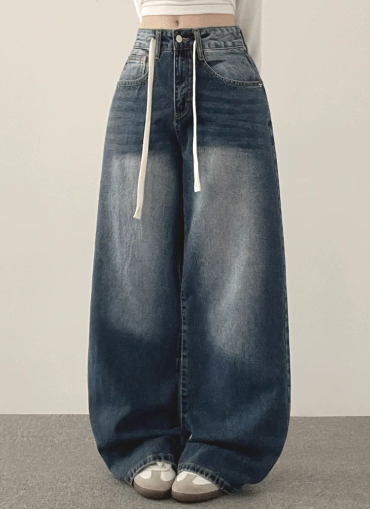 裏起毛コットンウォッシングポケットハイウエストワイドビッグループスナップボタンバックポケットヒドゥンバンディングデニムパンツ[選べる丈]