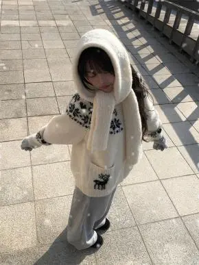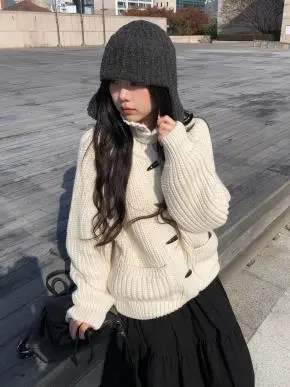 少し短めの丈がニットでもコンパクトに、