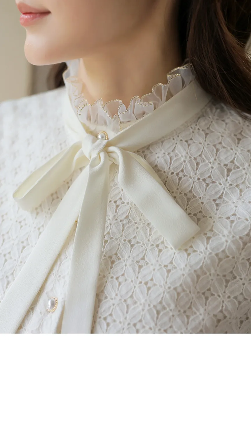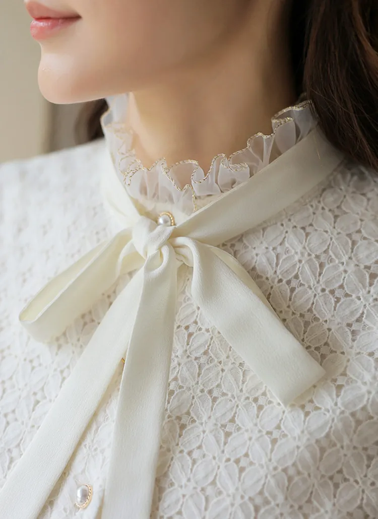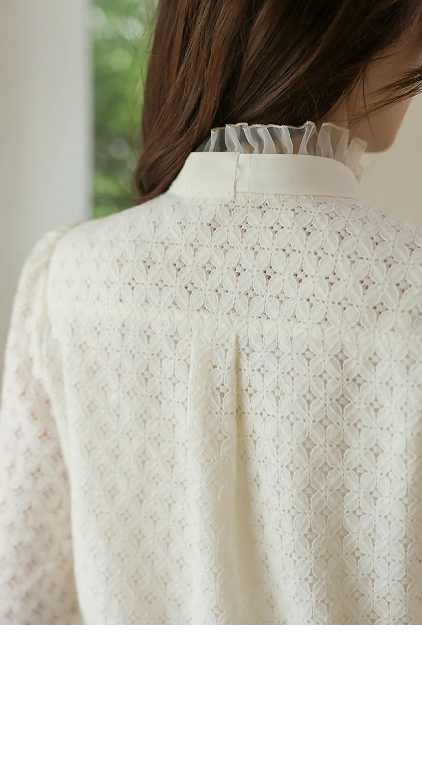 フラワーレースとシースルーフリルネックで