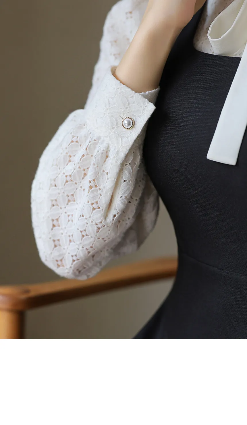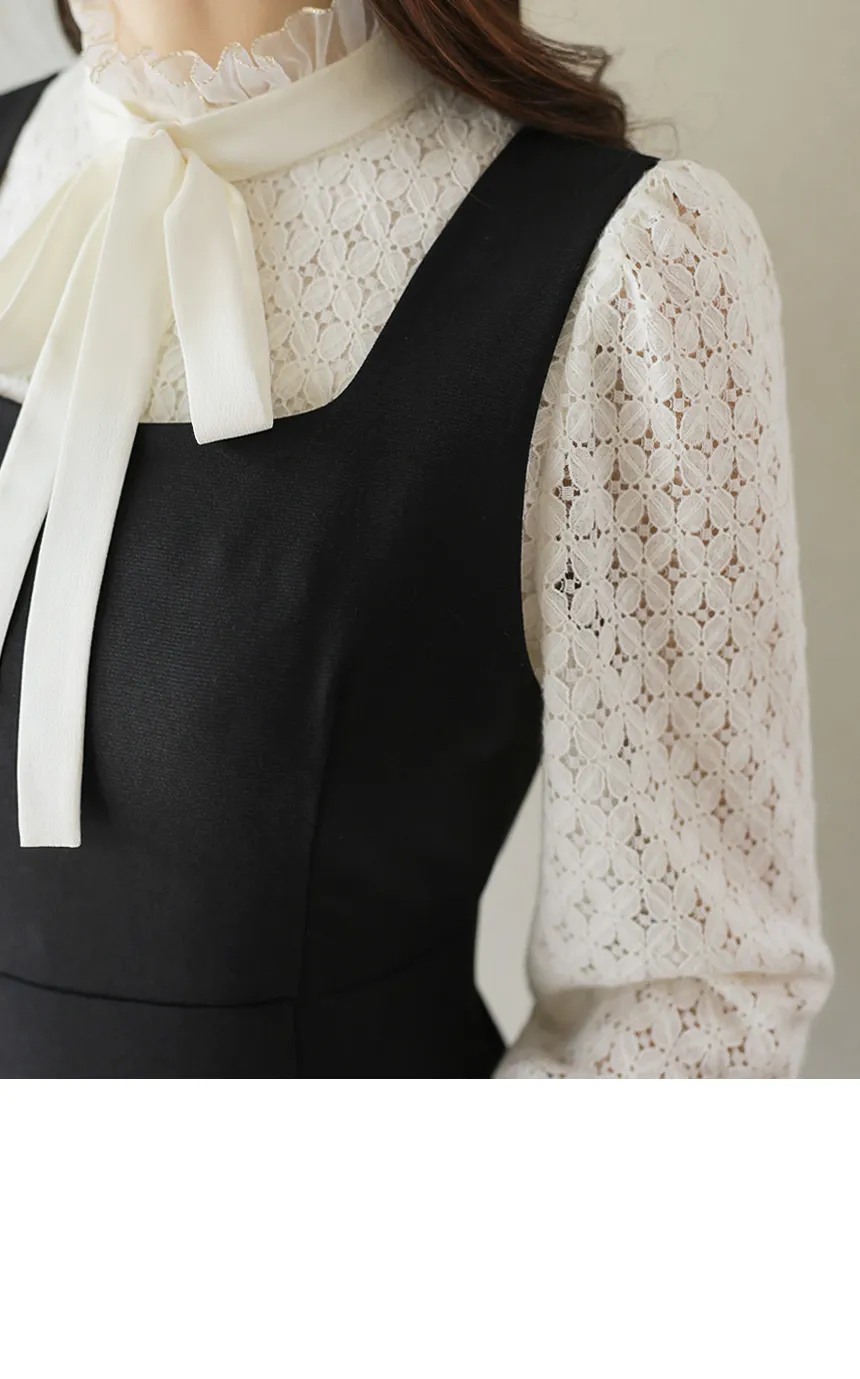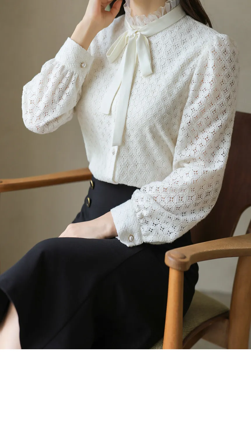 フラワーレースとシースルーフリルネックで