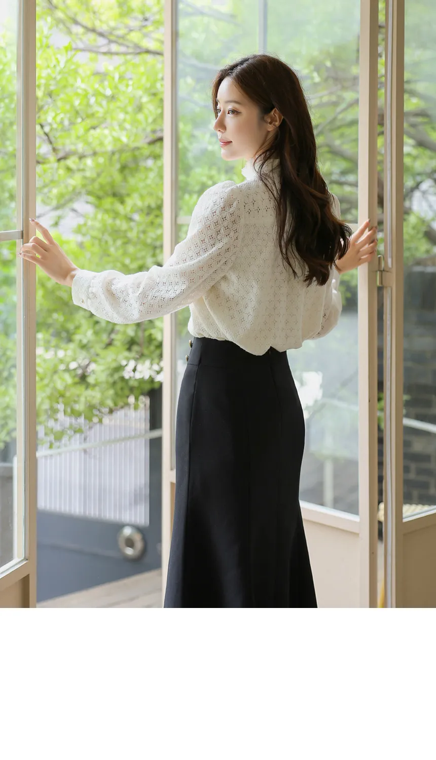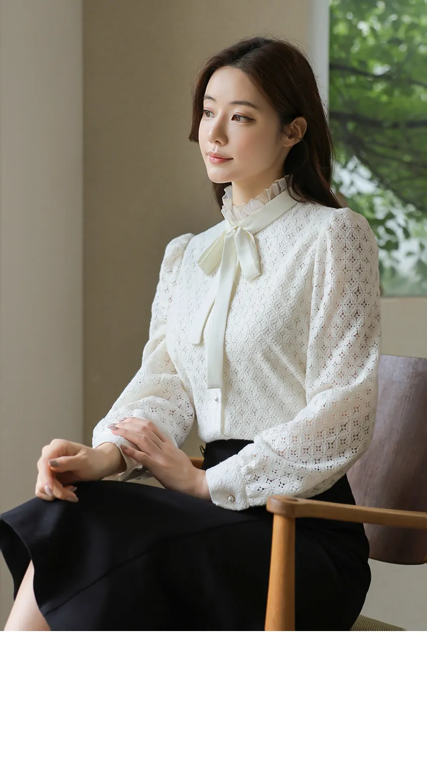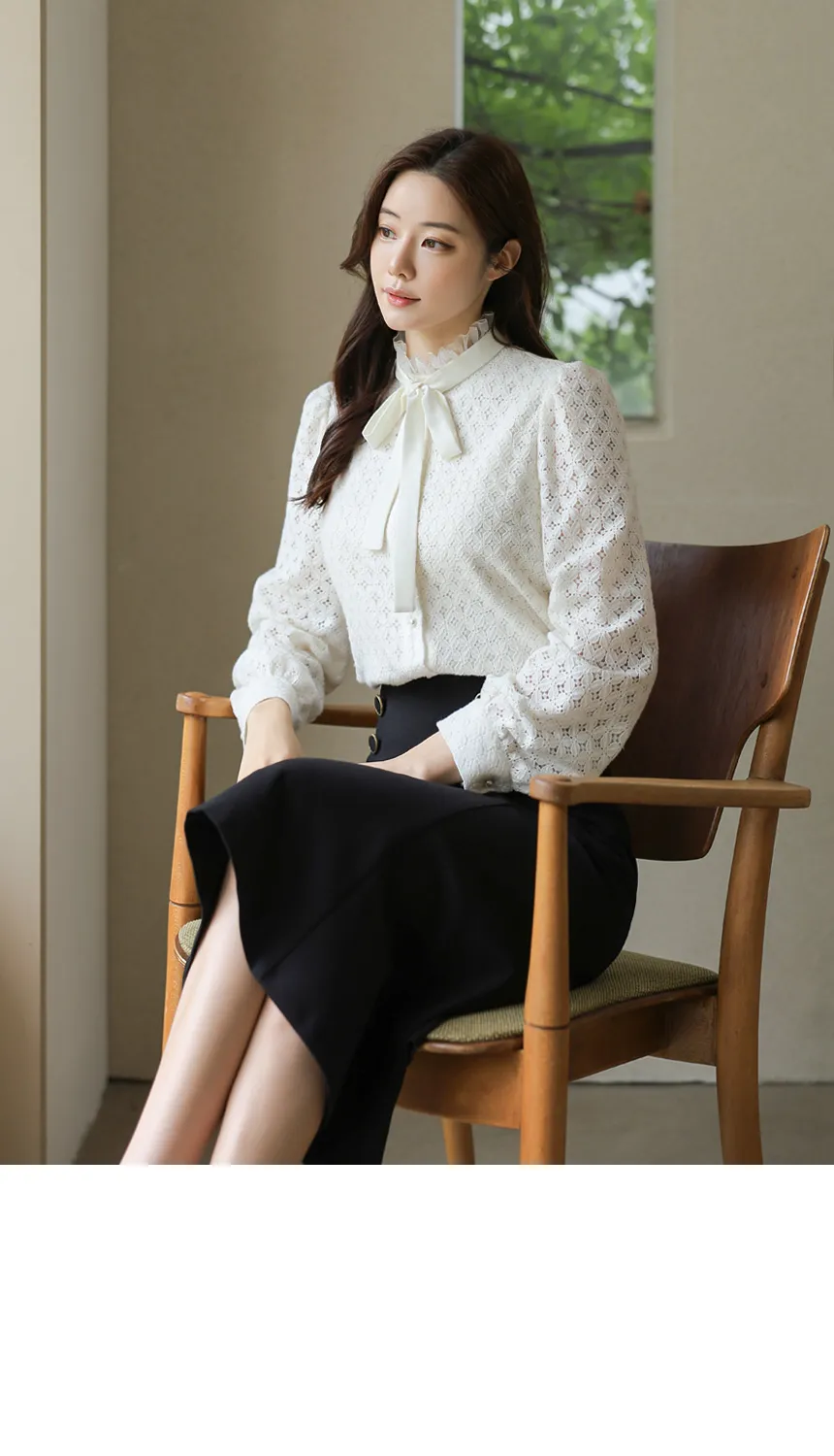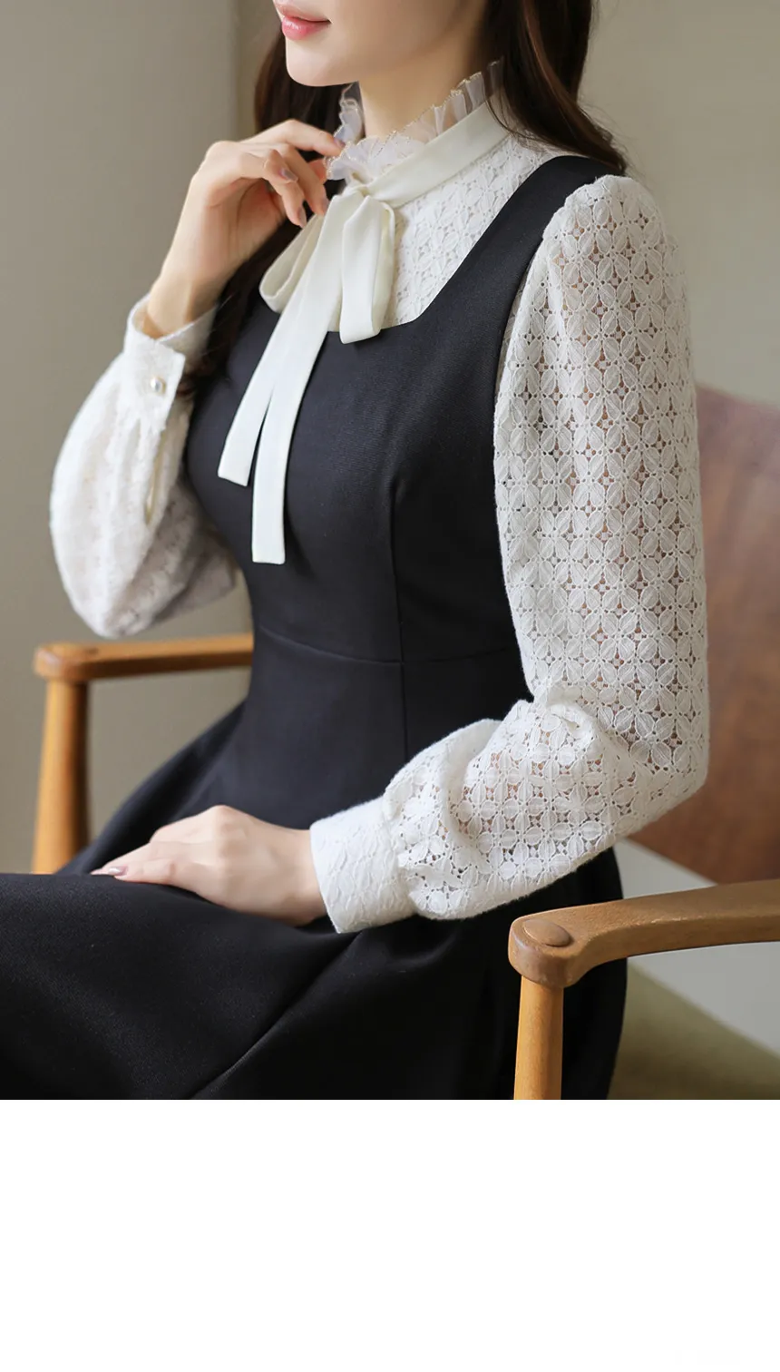 フリルネックが首元の優雅さを強調してくれます。