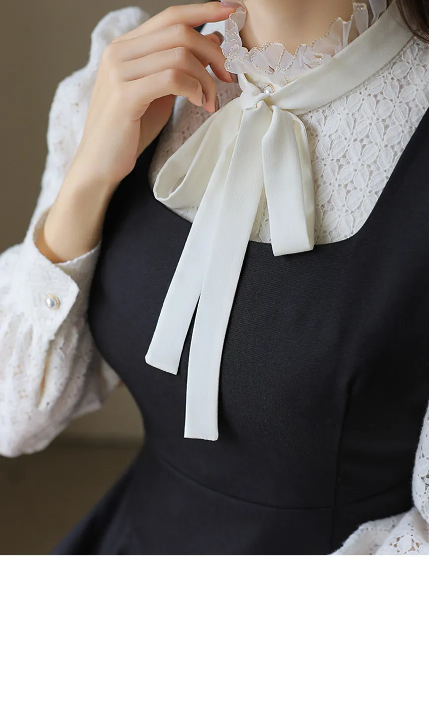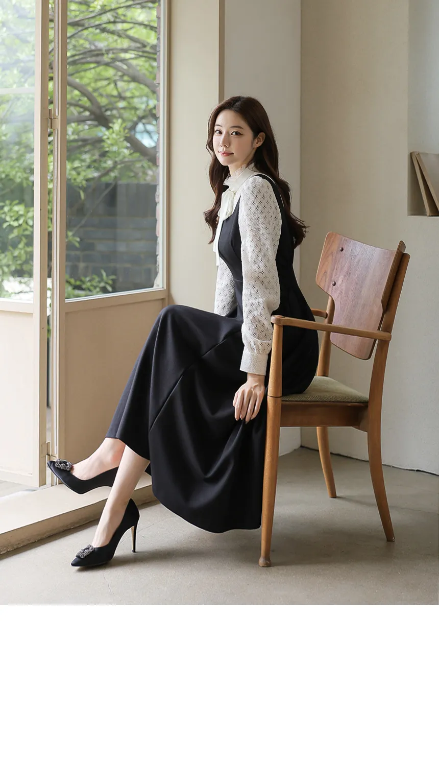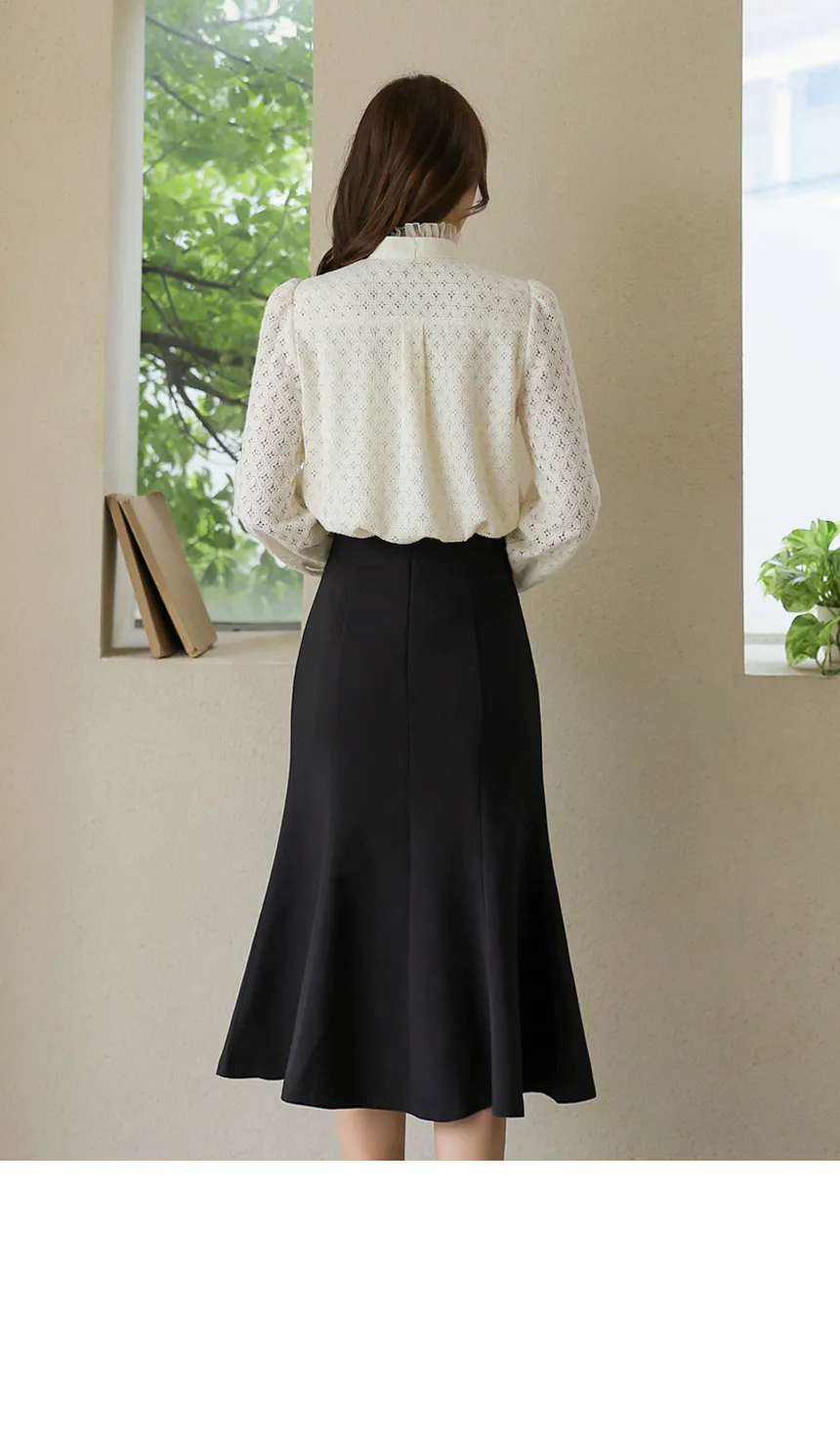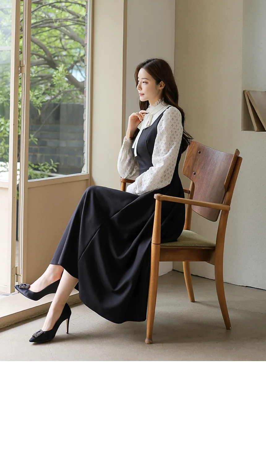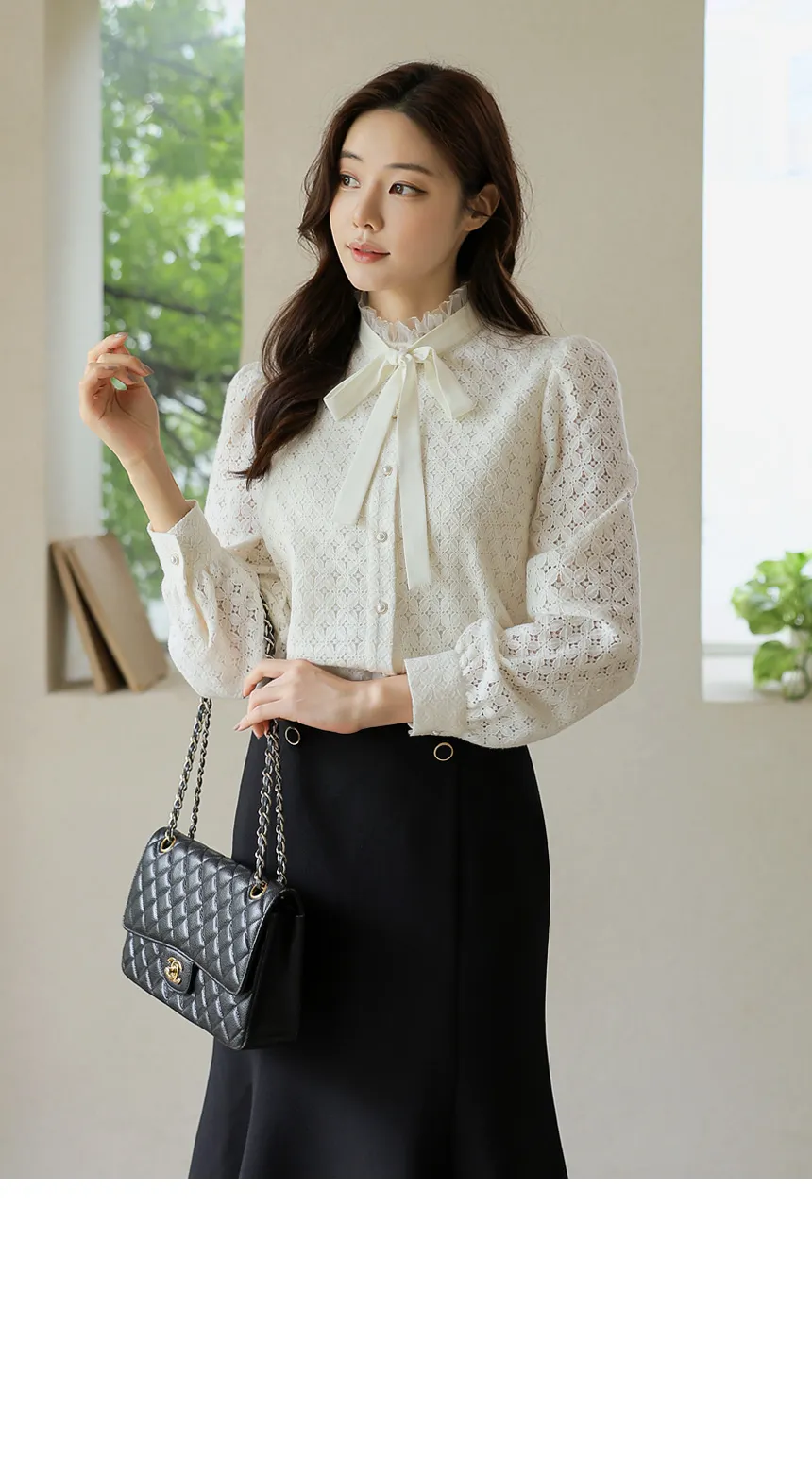 フリルネックが首元の優雅さを強調してくれます。