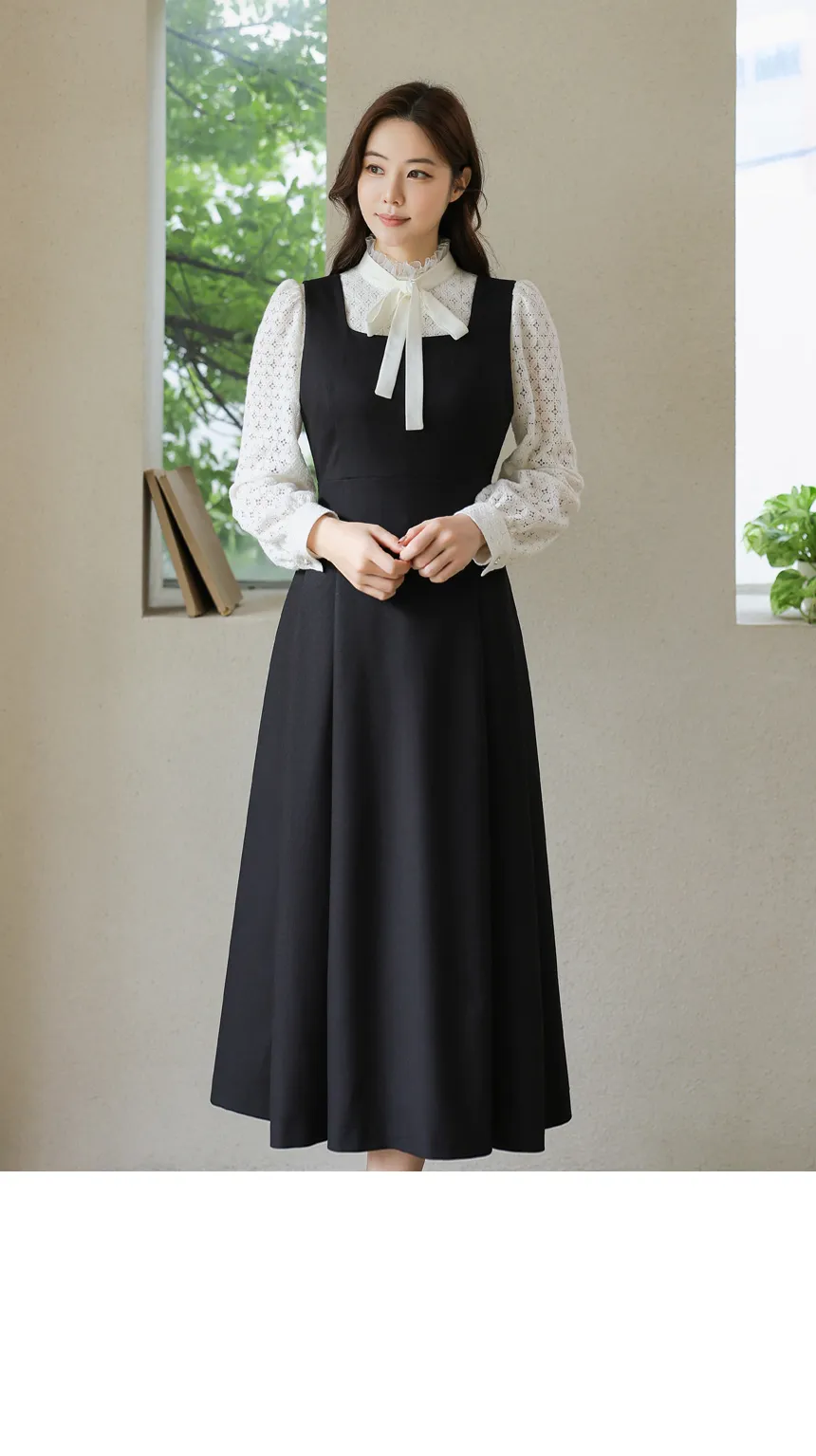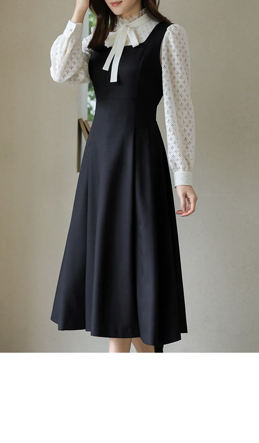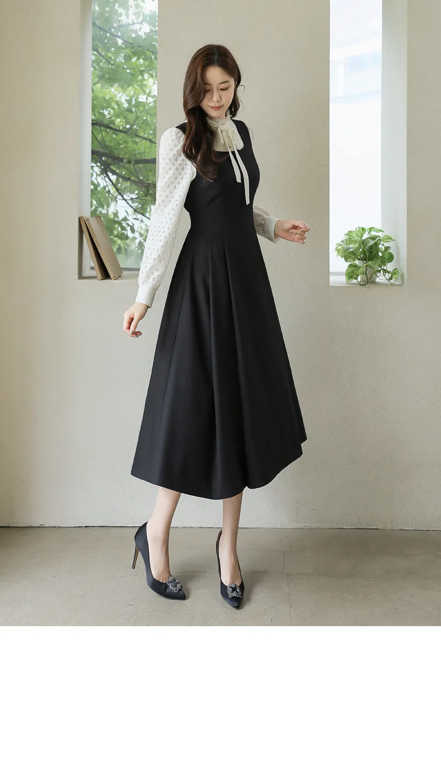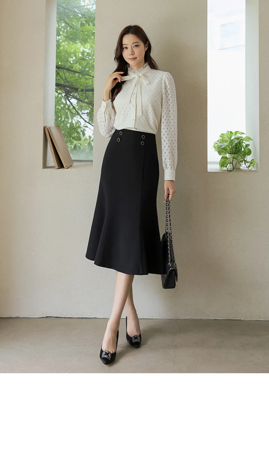 フリルネックが首元の優雅さを強調してくれます。