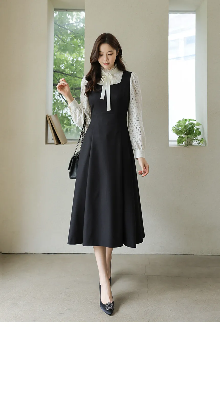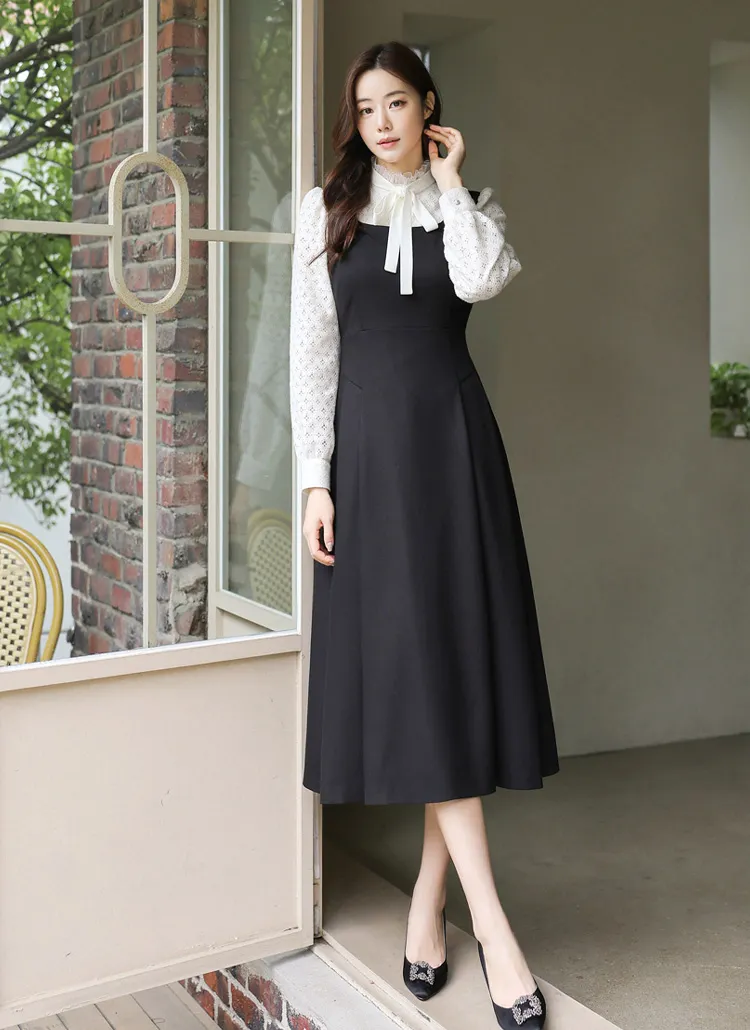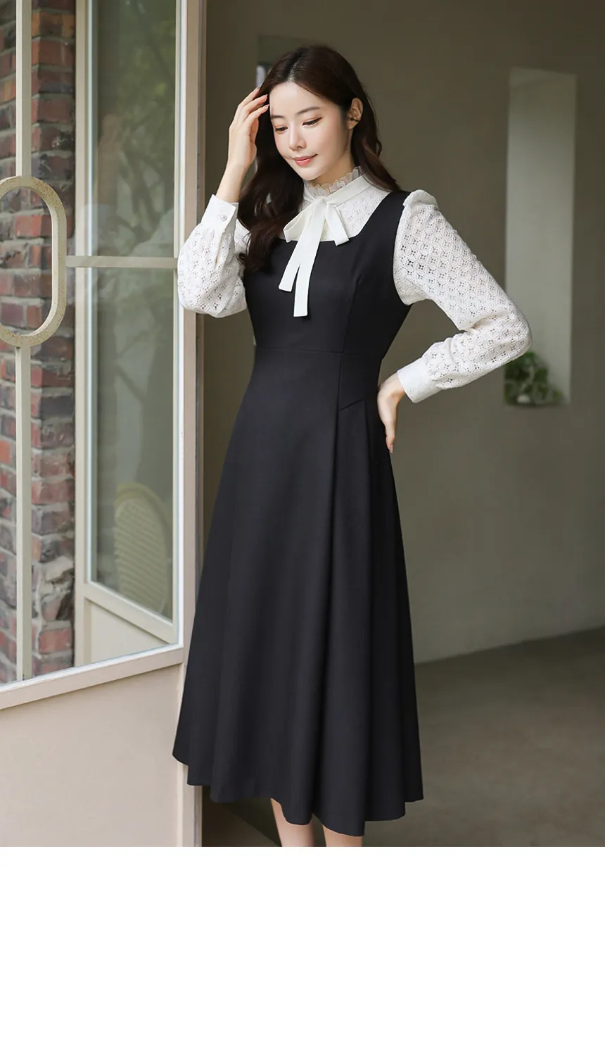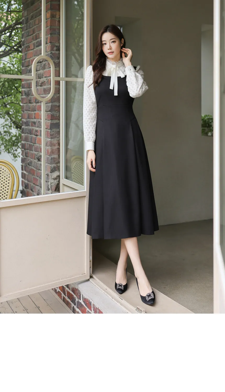フリルネックが首元の優雅さを強調してくれます。