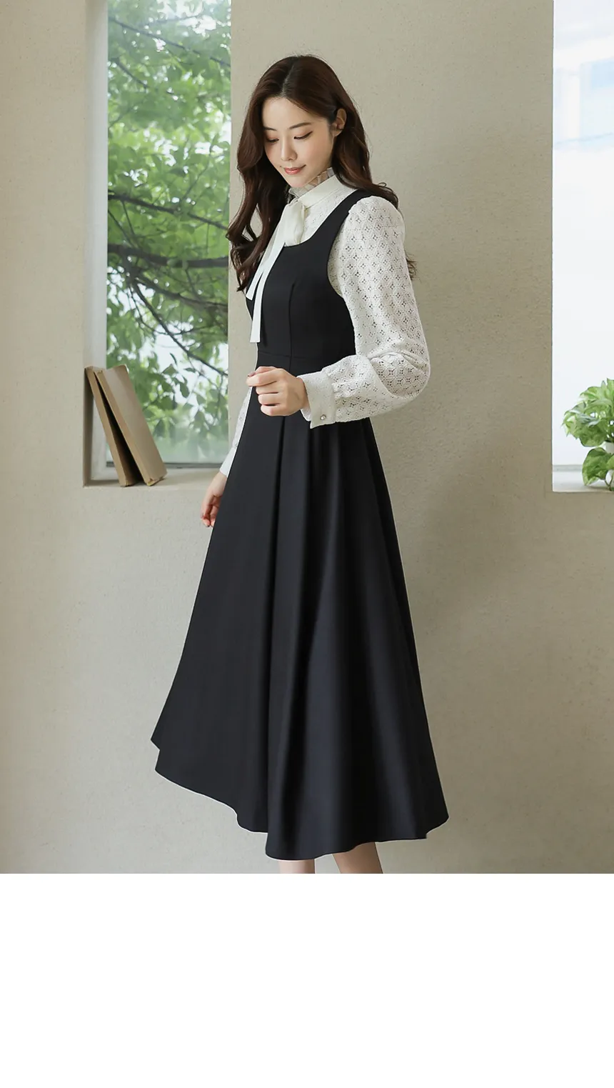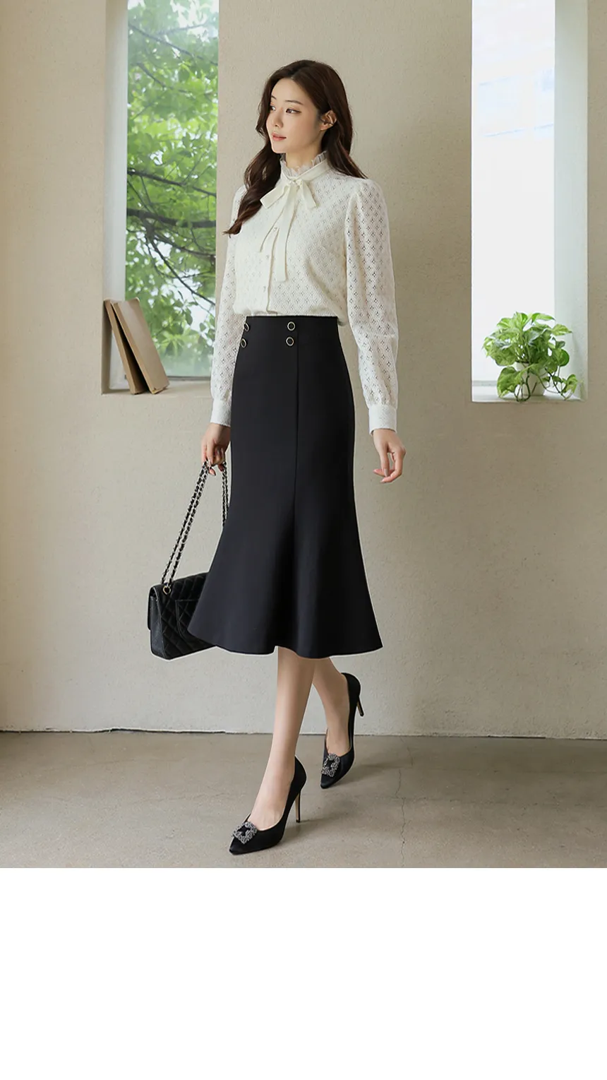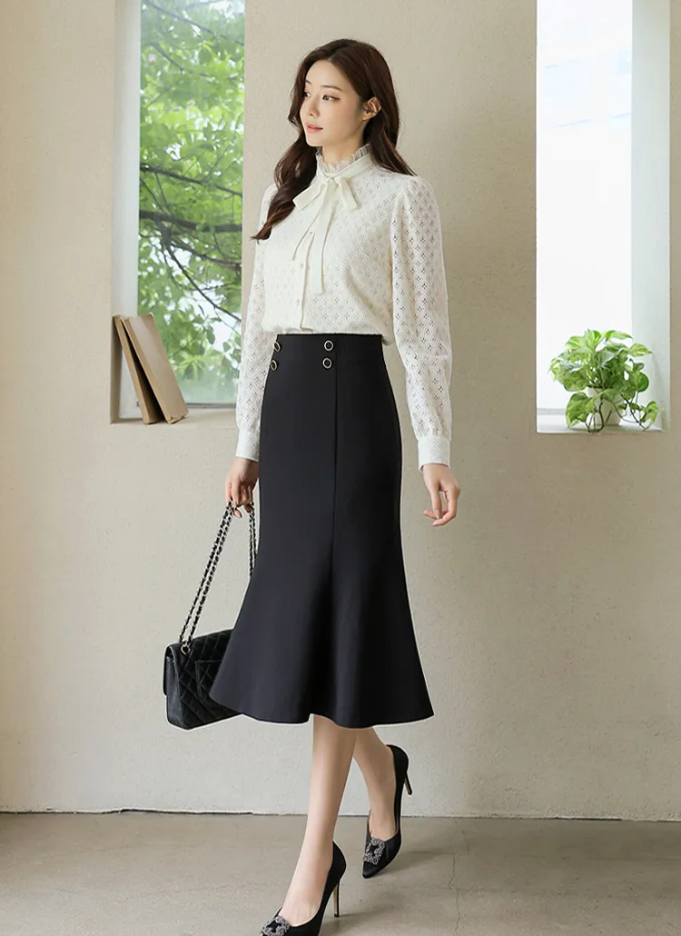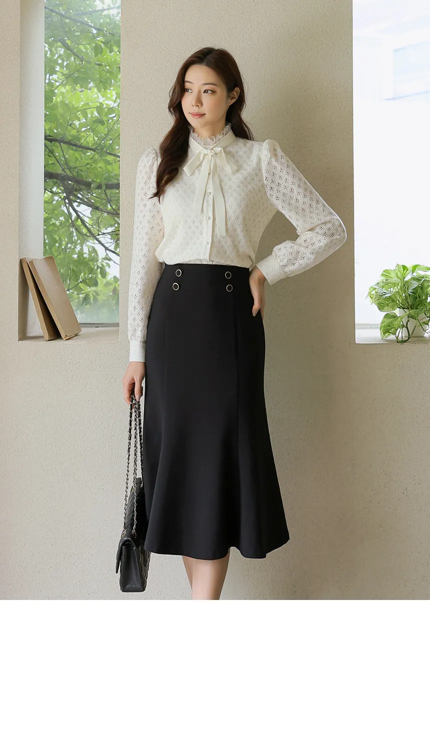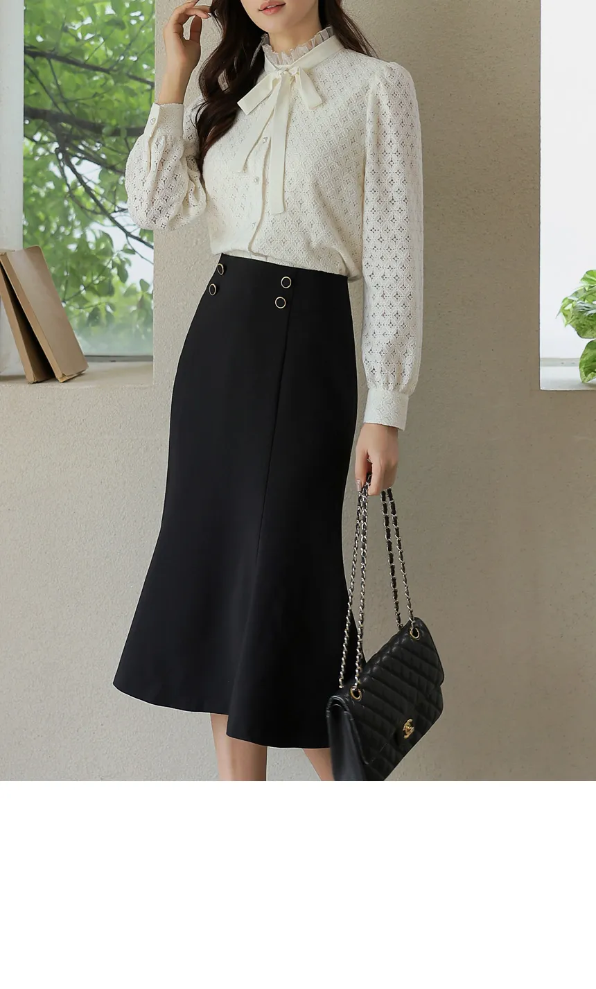 フリルネックが首元の優雅さを強調してくれます。