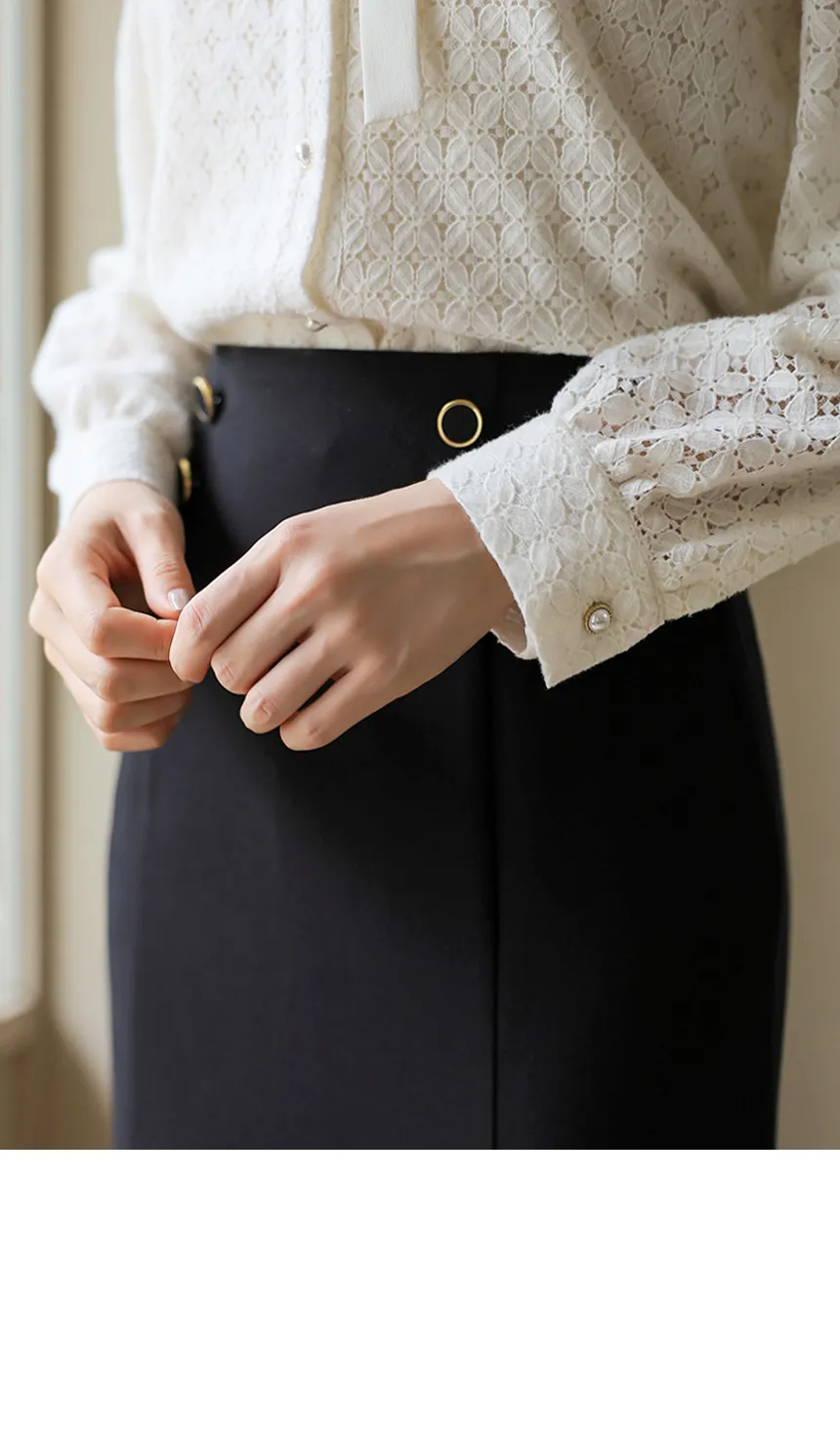 エコパールボタンが華やかでフェミニンなポイントをプラスし