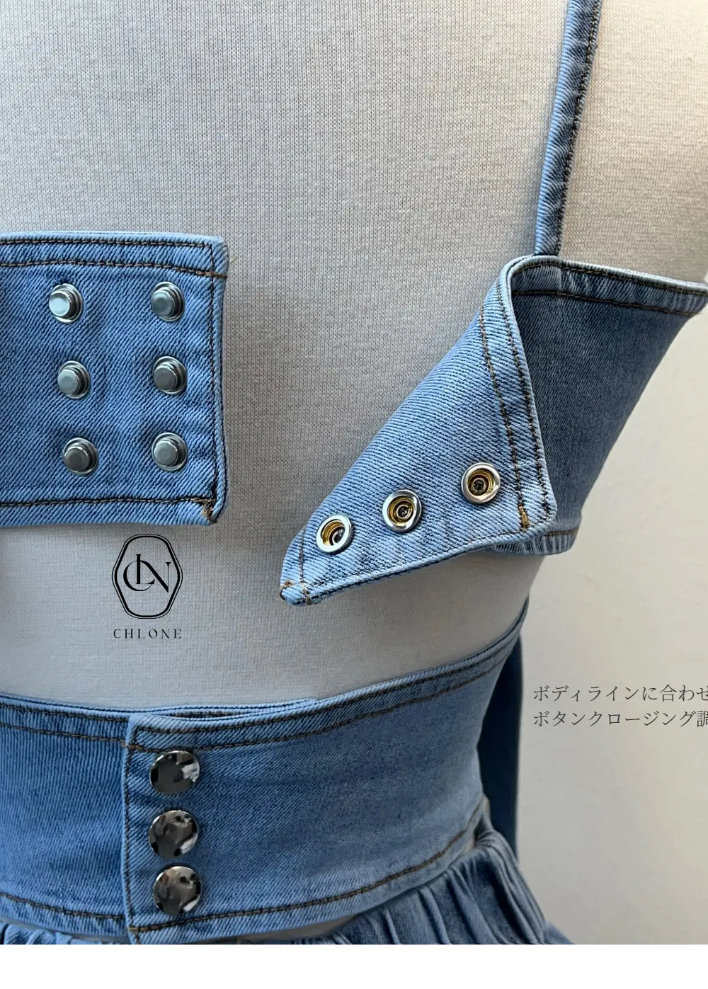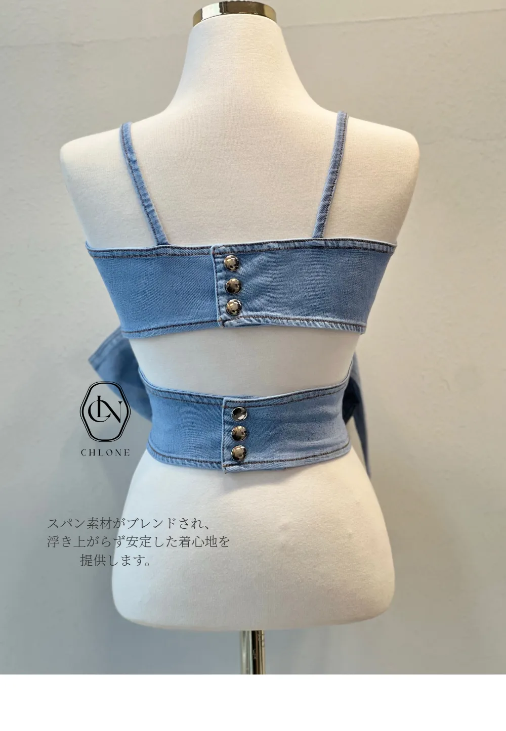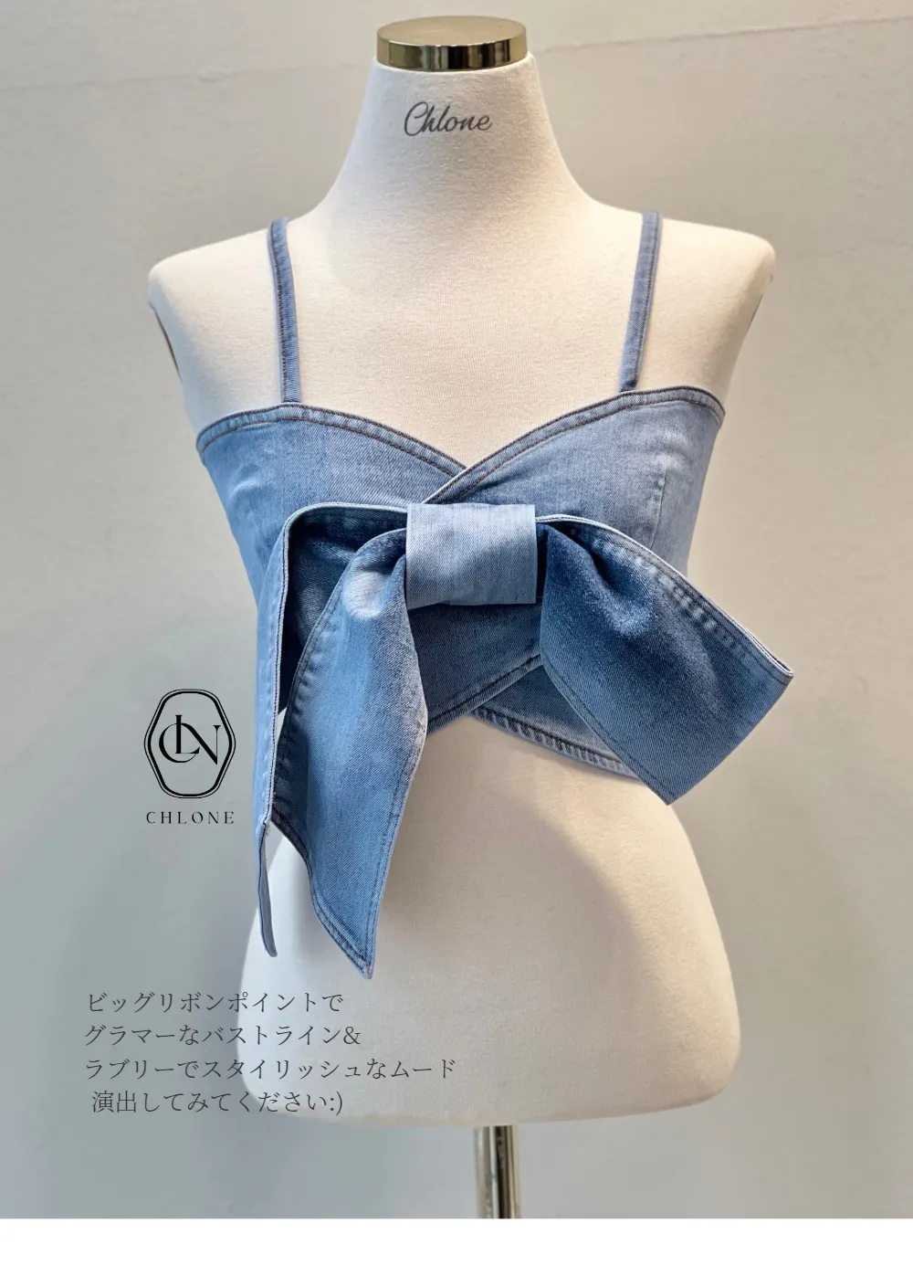 リボンビスチェデニムのセットアップをご紹介します。