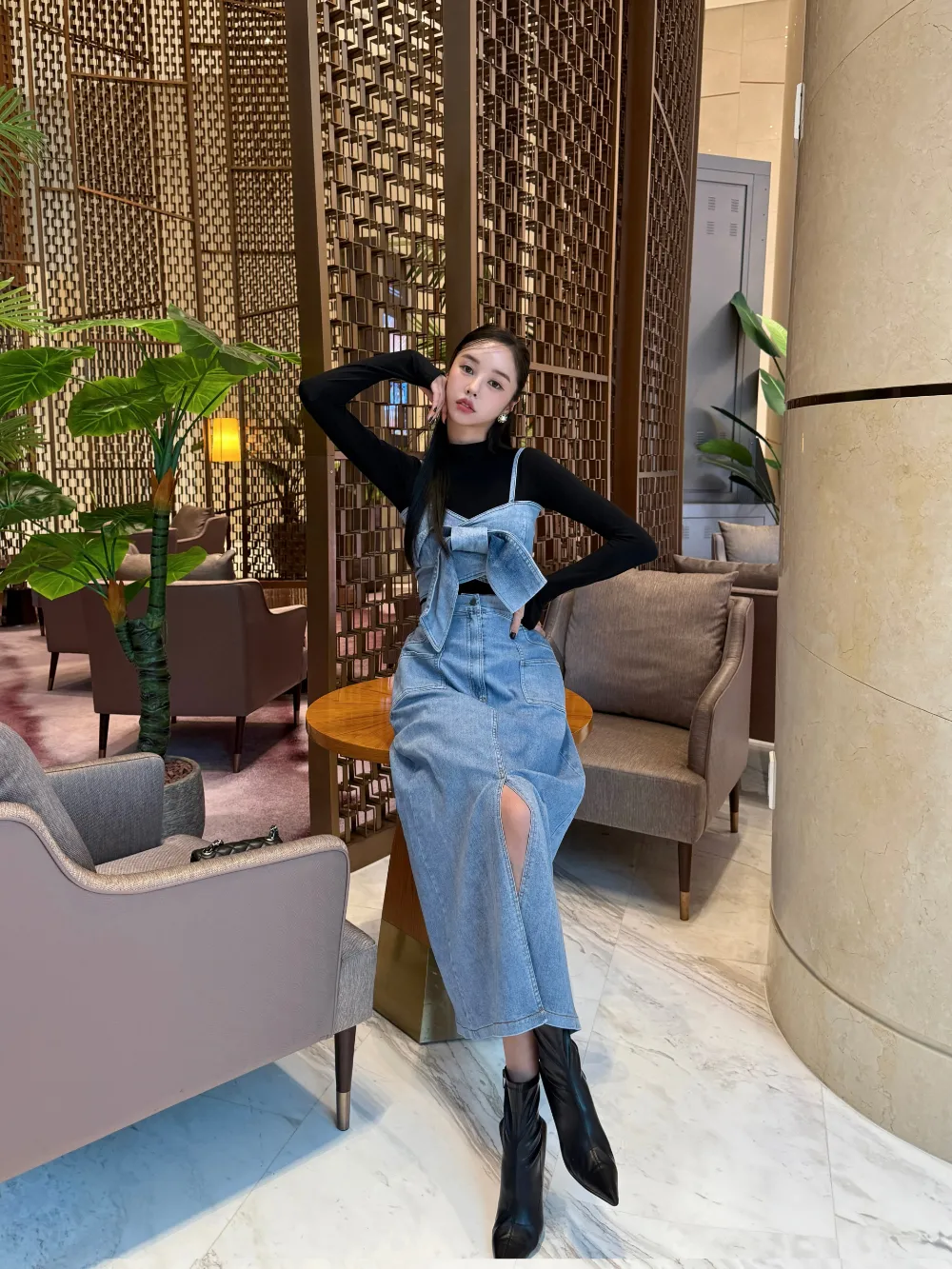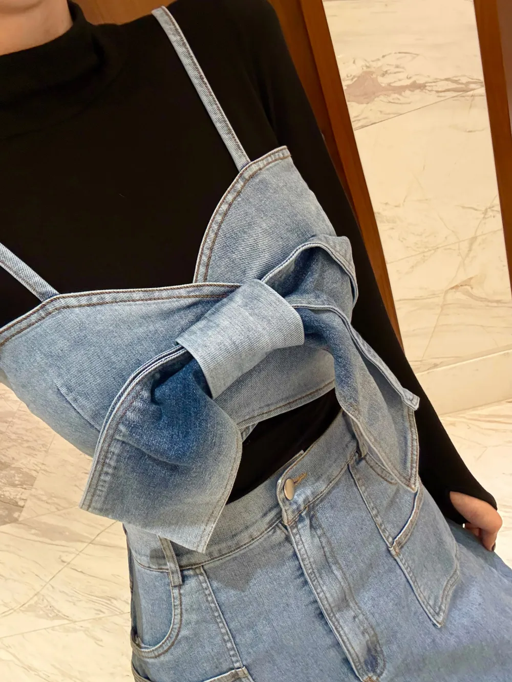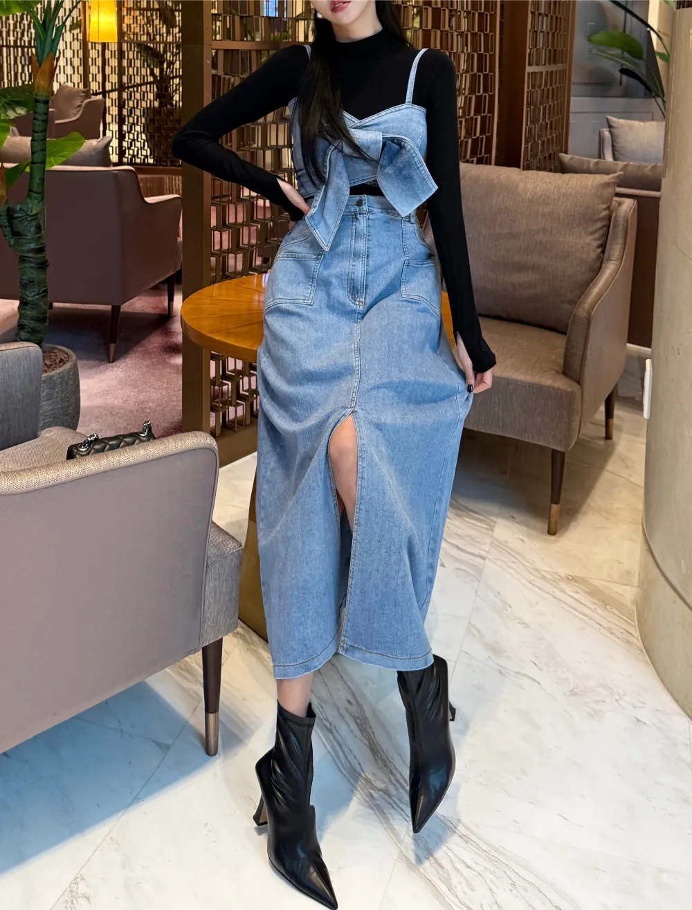 リボンビスチェデニムのセットアップをご紹介します。