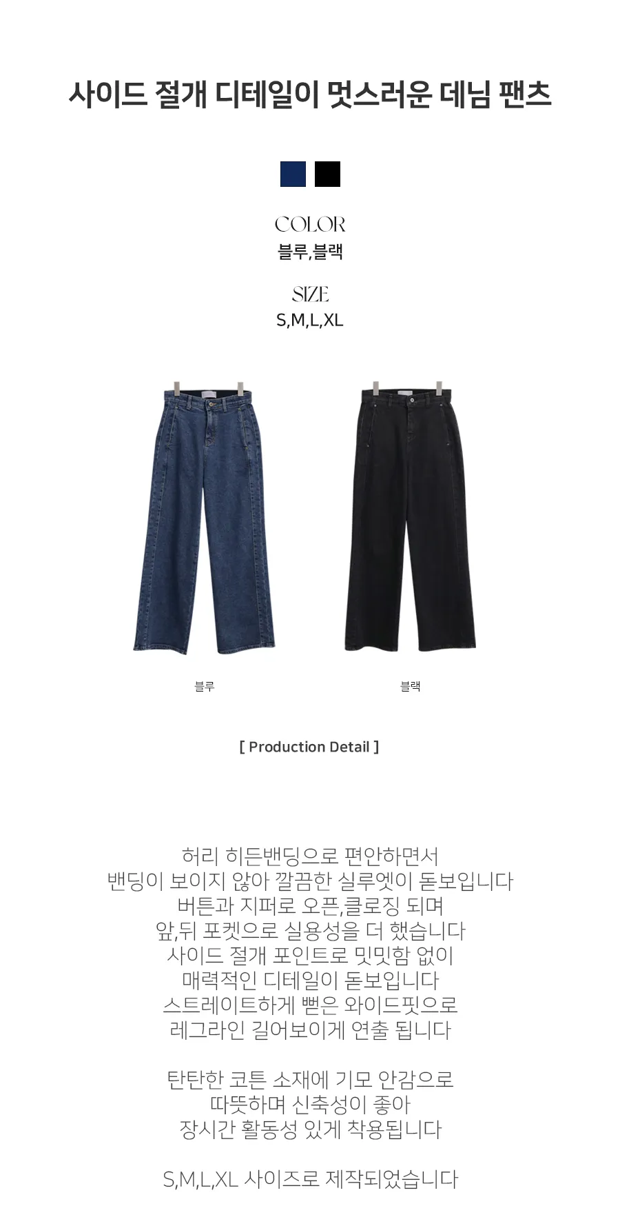| Size | ウエスト | ヒップ | 裾幅 | 股上 | 着丈 |