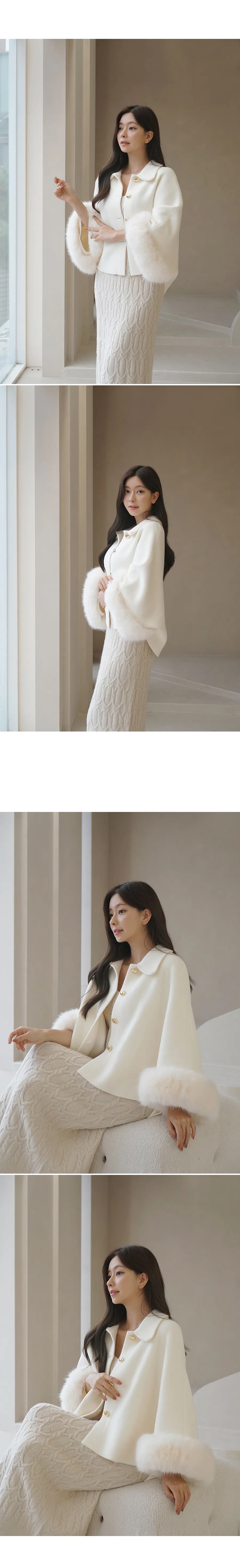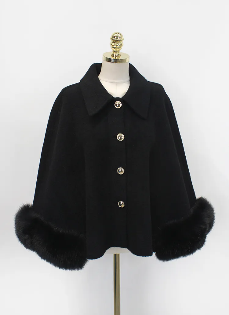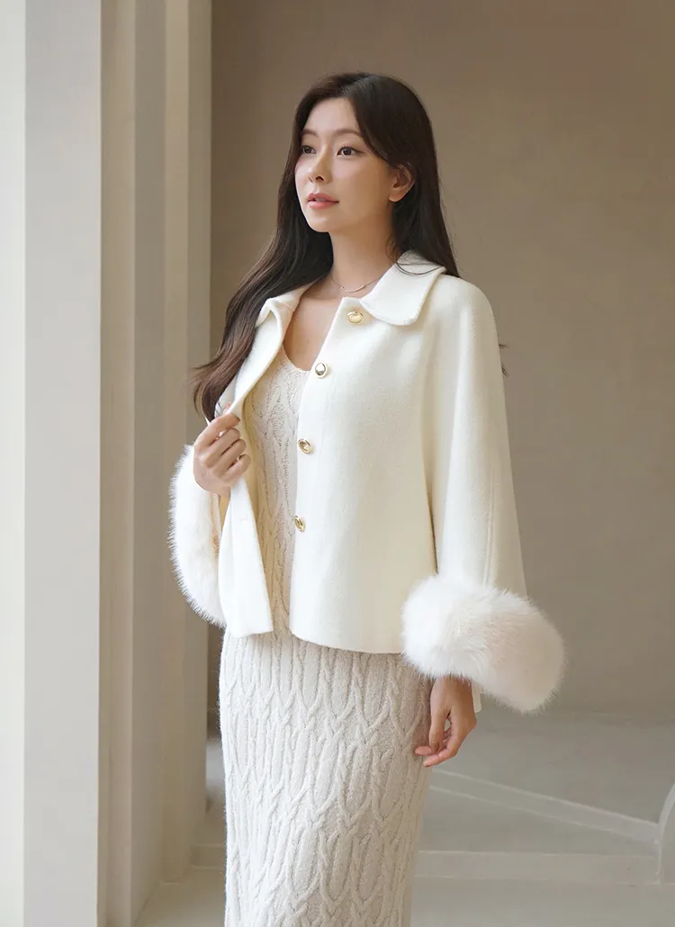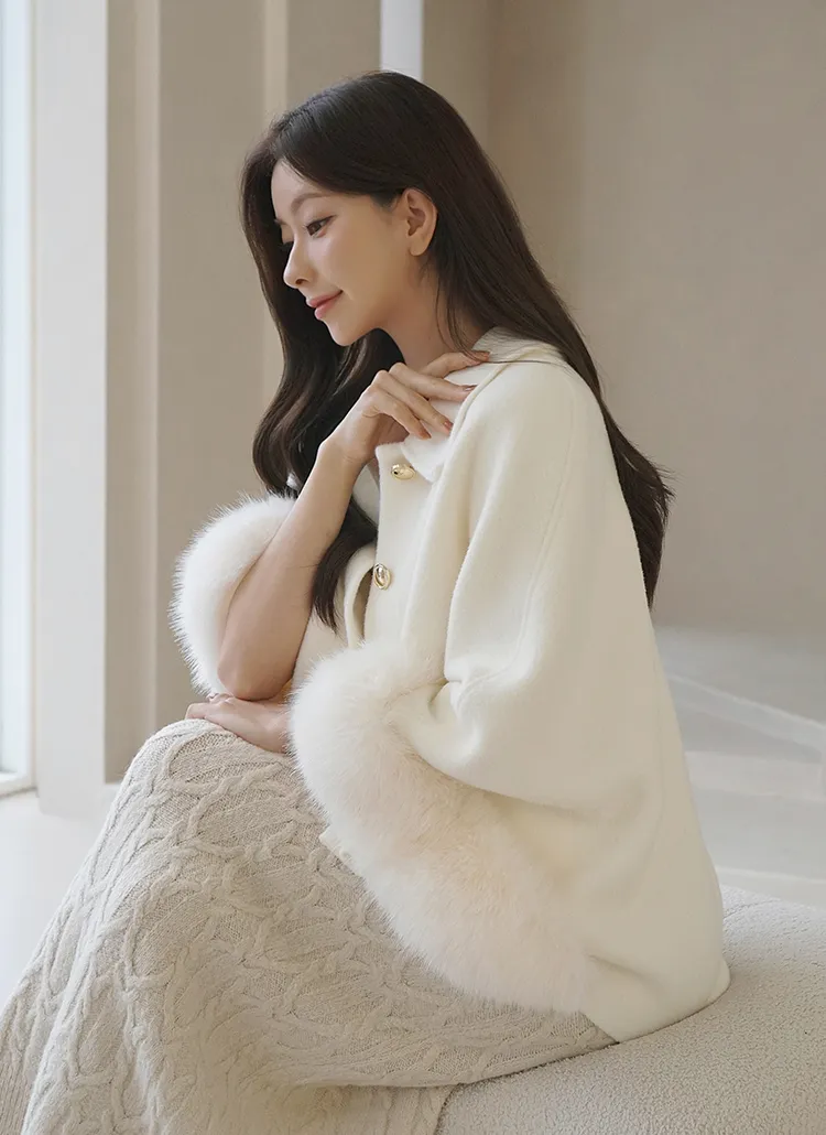 カラーネックエコファーポイントケープコートをご紹介します🤍