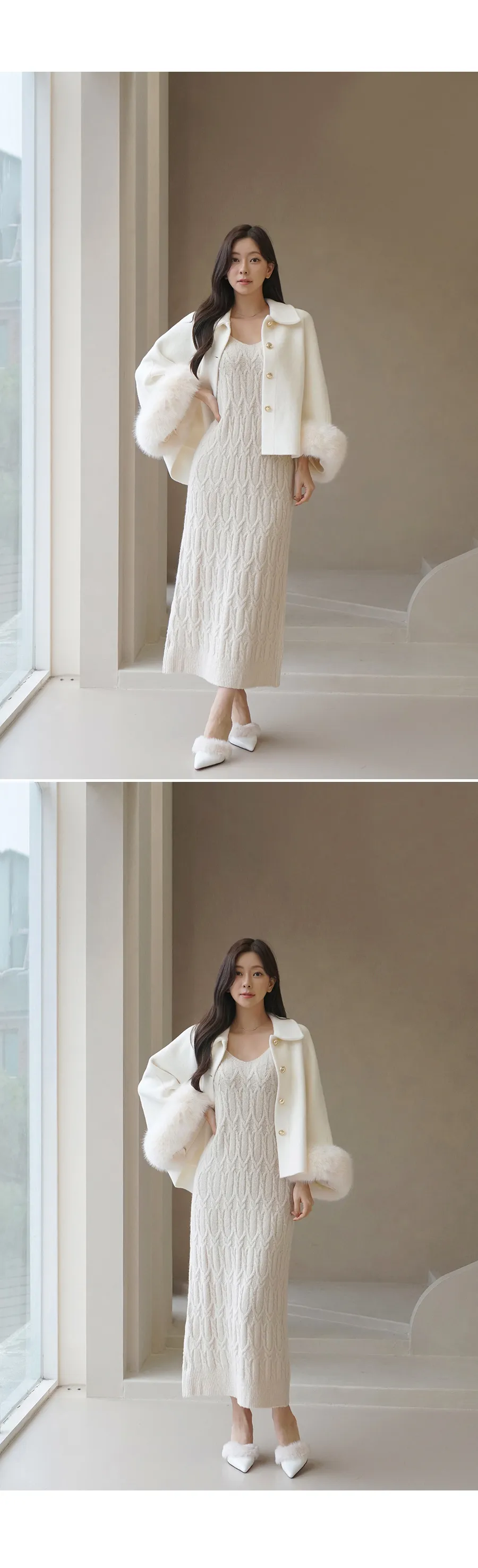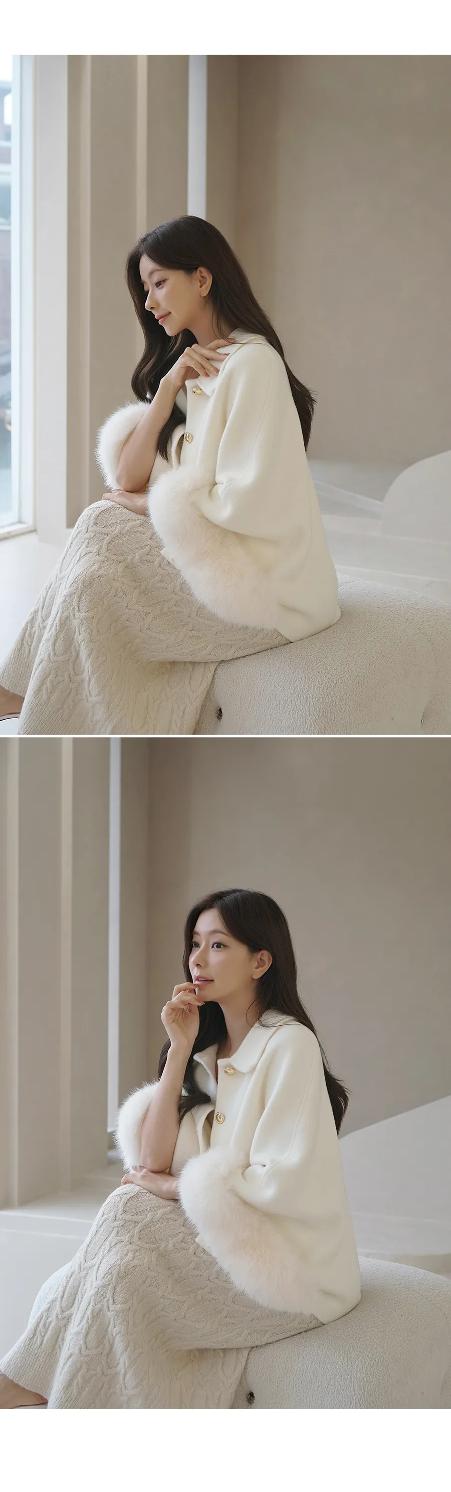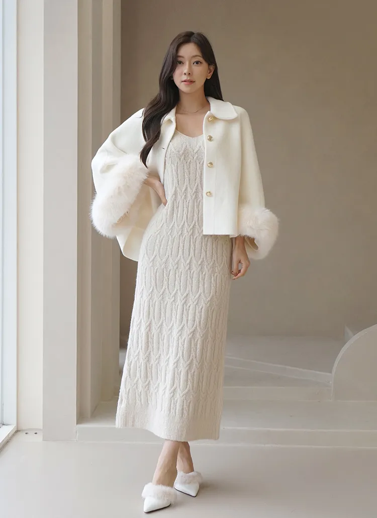 カラーネックエコファーポイントケープコートをご紹介します🤍