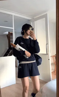 フードドローストリングポケットダブルジップウエストゴムオーバーサイズドローコードルーズワイドトラックドロップショルダー配色ツーピース(トップス、ボトムス)パンツジップパーカー