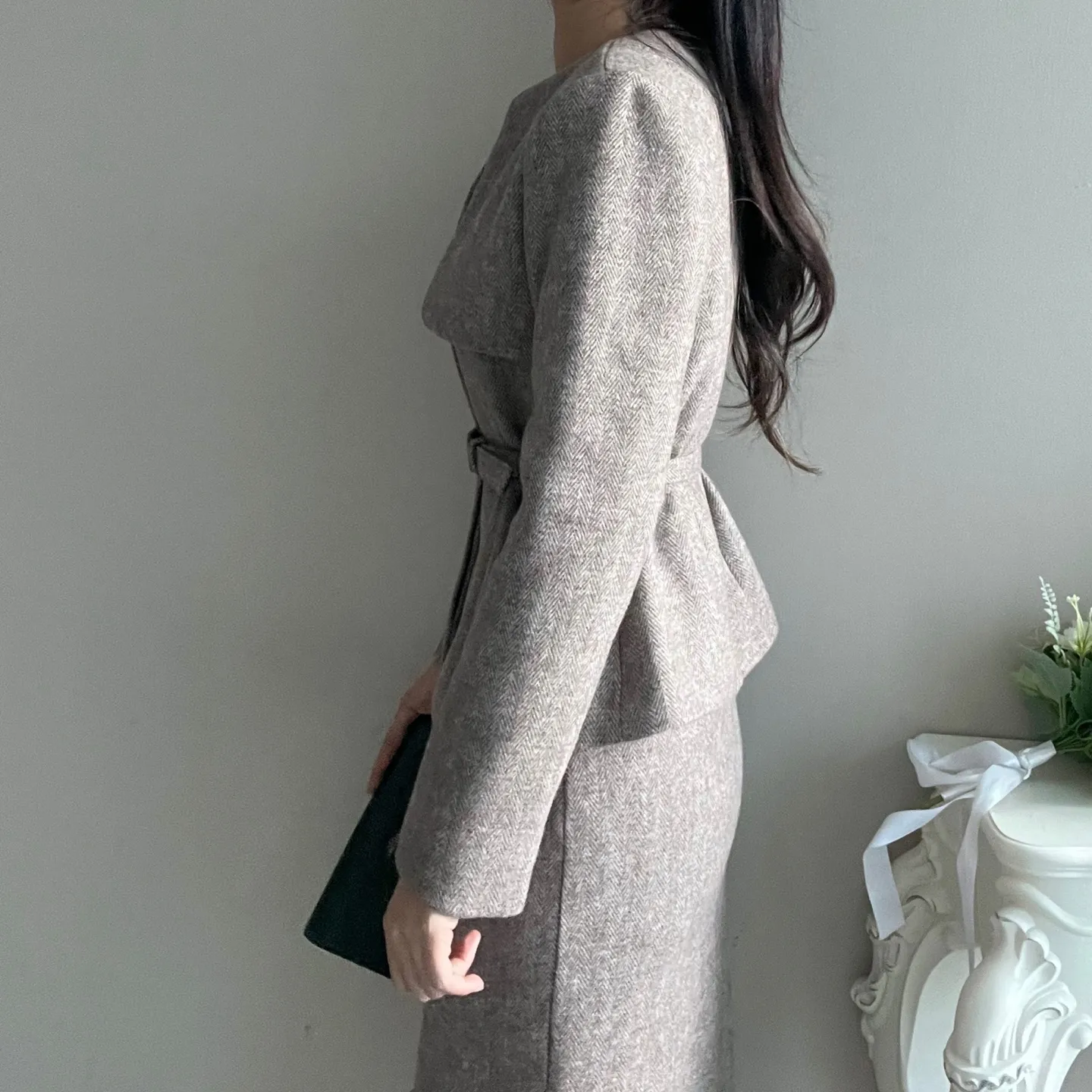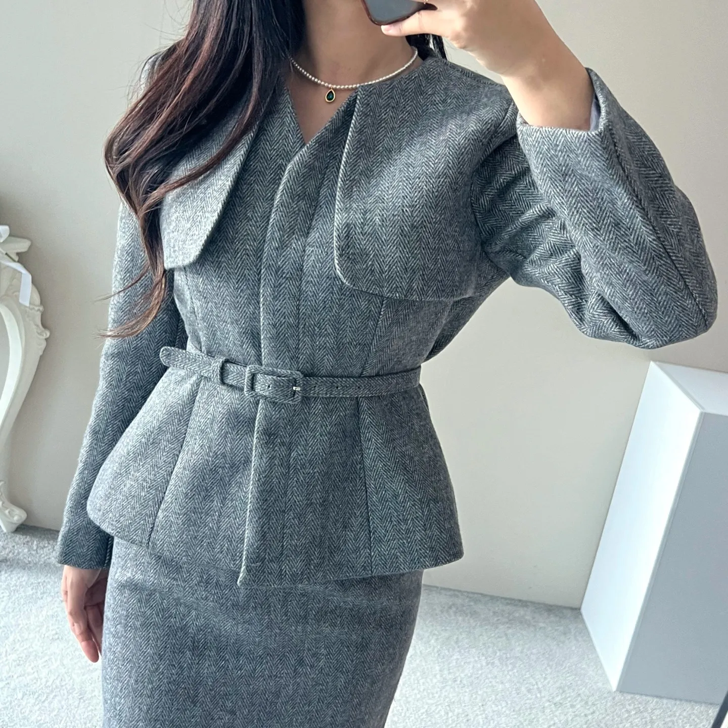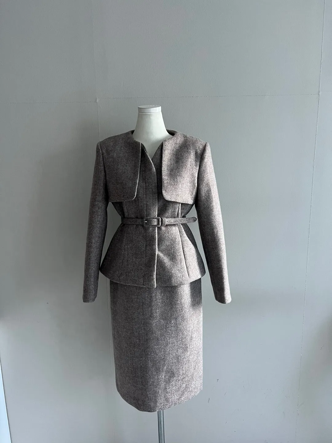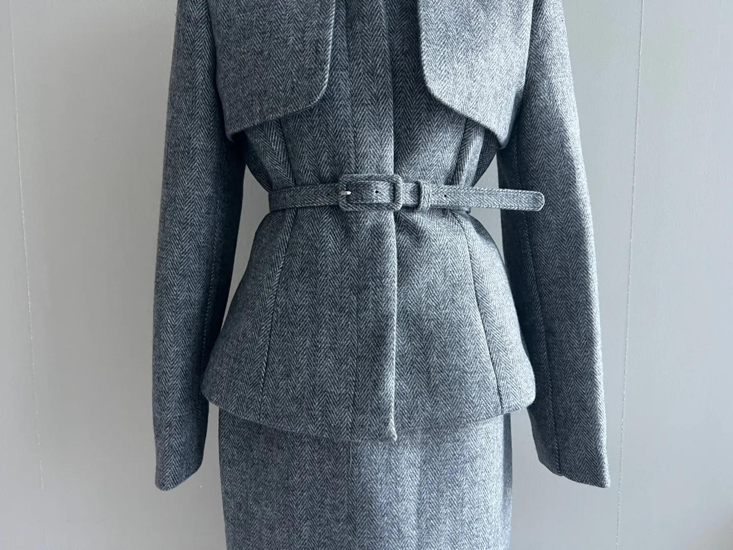 ベルト付ガンフラップヘリンボーンジャケット&IラインスカートSET・p696605