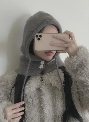 ウール混アンゴラ混ボタンバラクラバ