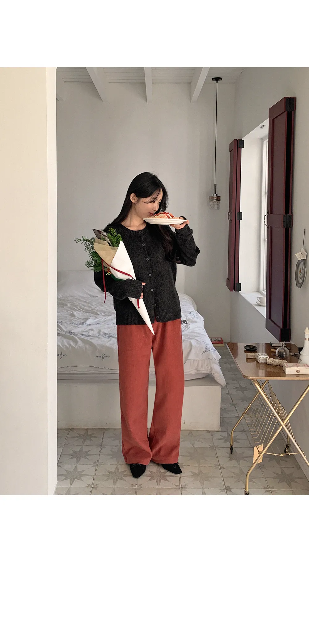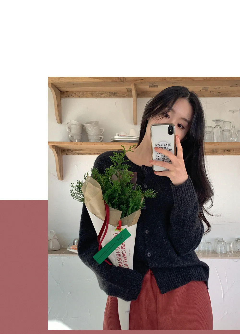 着用 : ブラック(BLACK) / S,アイボリー(IVORY) / S,ミスティピンク(INDI PINK) / S,カーキブラウン(KHAKI BROWN) / S