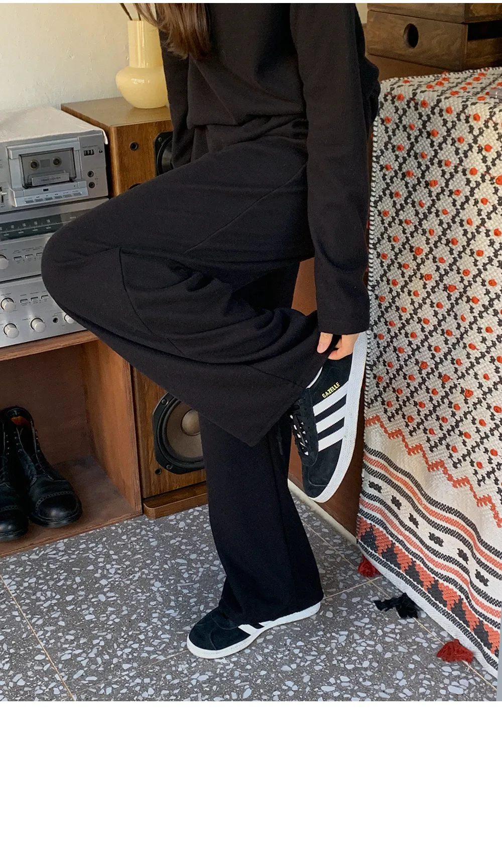 | Size | ウエスト | ヒップ | 裾幅 | わたり | 股上 | 着丈 |
