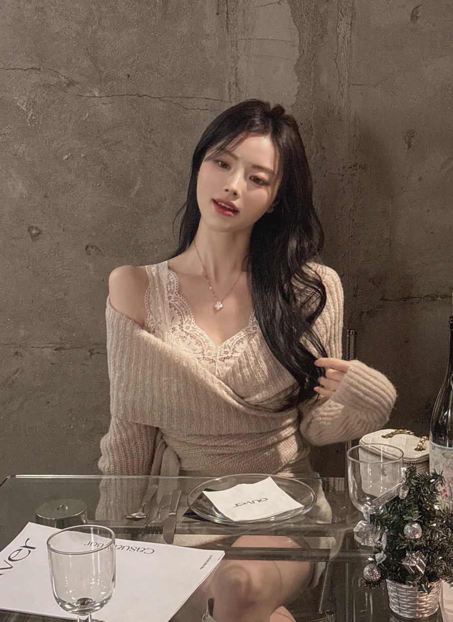 清楚&セクシーなヌーディカラーのレースノースリーブと