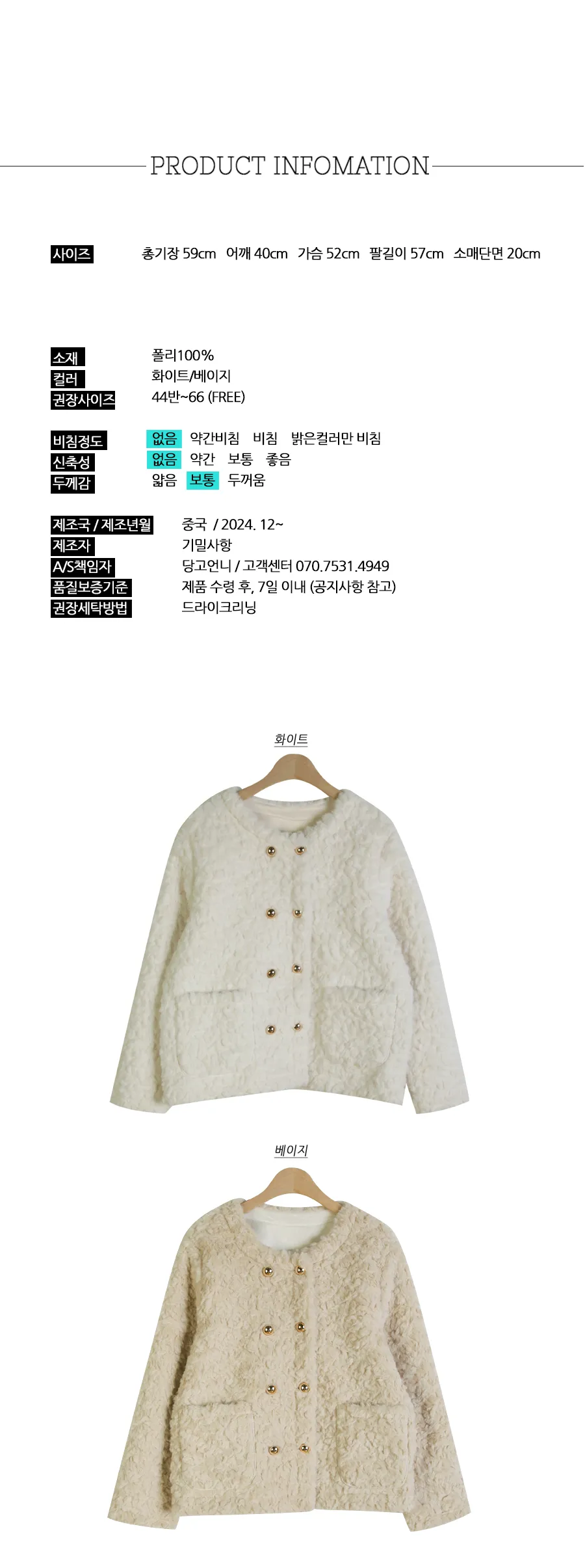 着用 : ホワイト / FREE