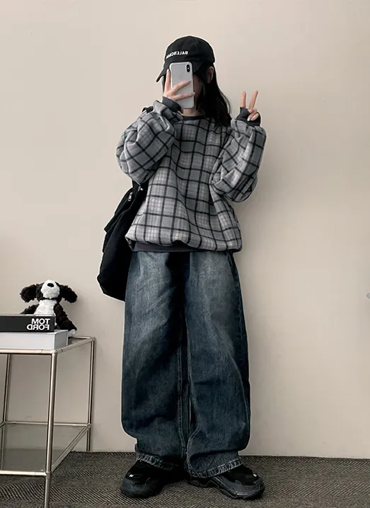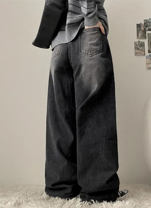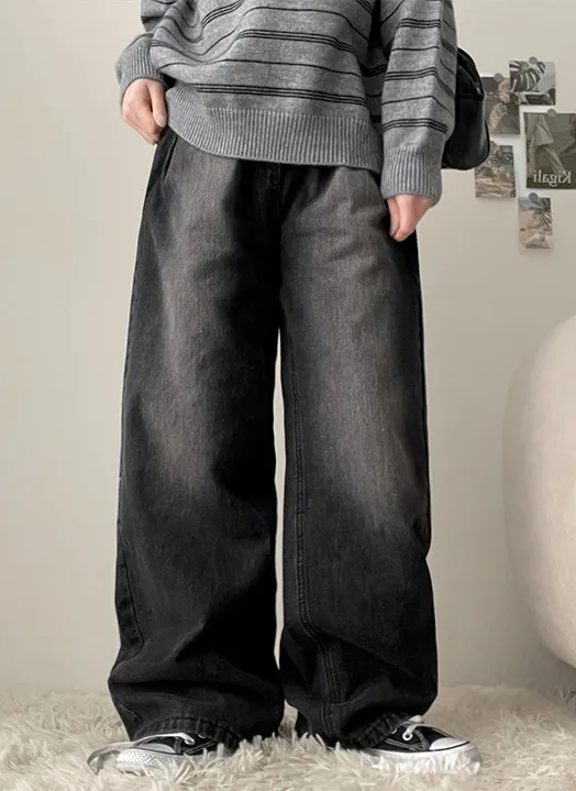 デニムベーシックショートループリベットジップアップリボン(固定)ワイドバックポケットポケットフラップポケットウォッシングディープブルーデニムパンツ[選べる丈]
