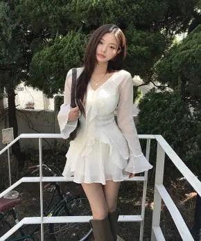 ボタンスクエアネックシャーリングパフスリーブラグランクロップドスリム長袖フレアAラインワイドネックミニヒドゥンジッパーチェックツーピース(トップス、ボトムス)スカートブラウス