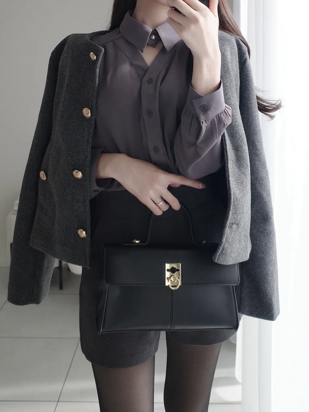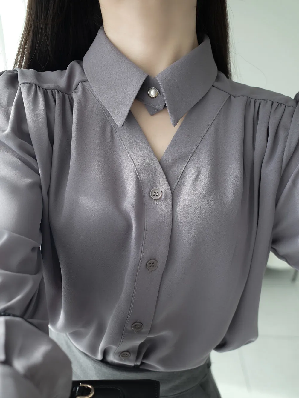 - 首元パール調ボタン開閉可