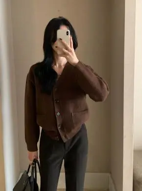 ニットソフトラウンドネックボタン長袖ベーシックカーディガン