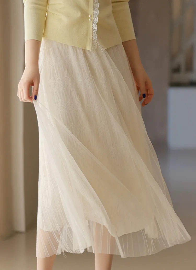 チュールプリーツロングスカート