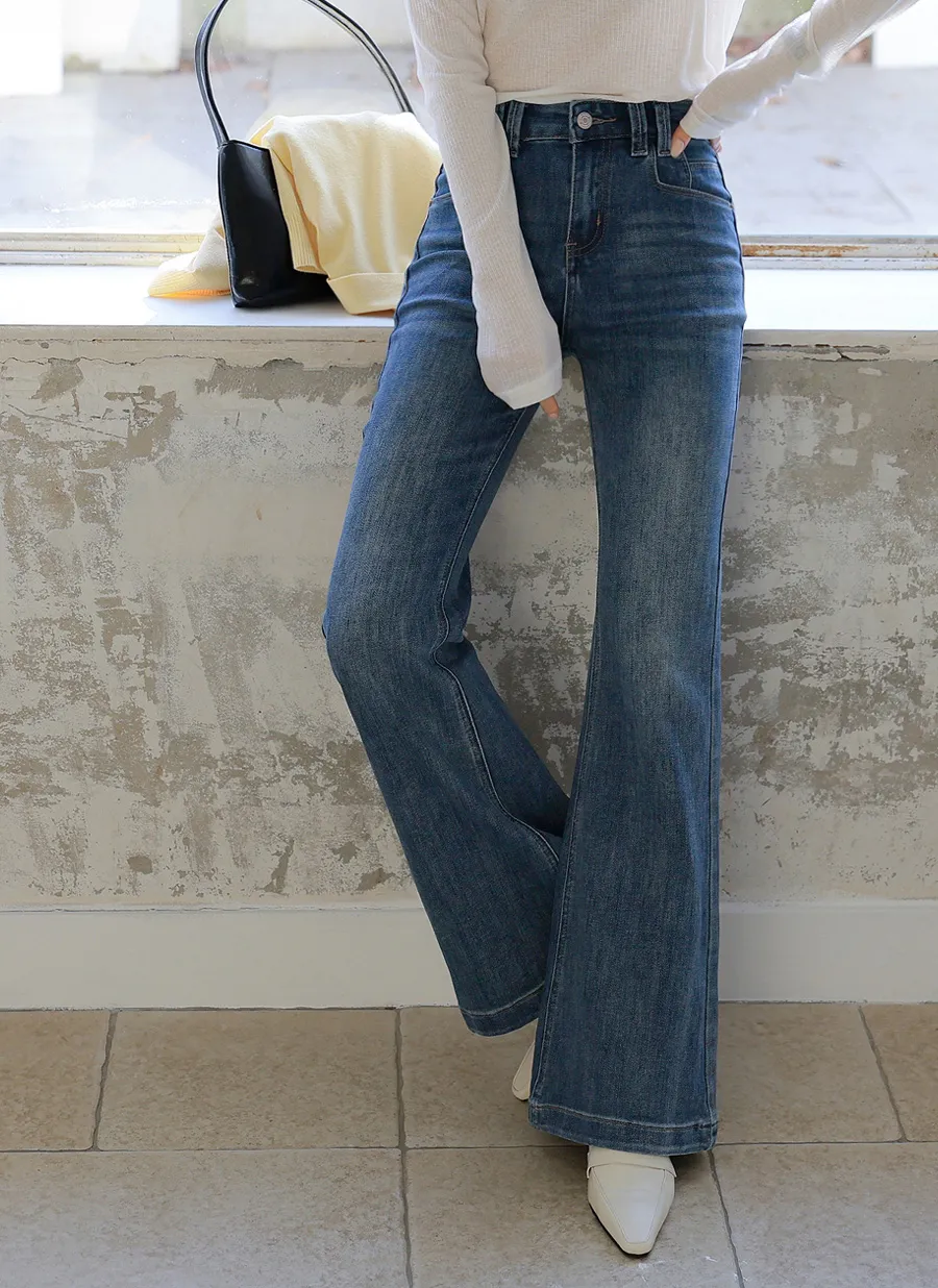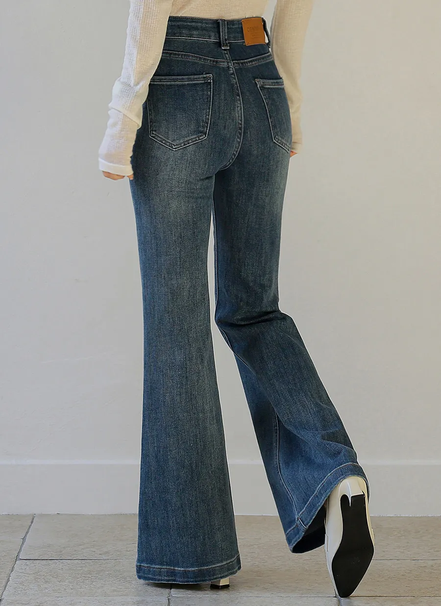 ストレッチデニムジップアップバックルウォッシングポケット骨盤パッドスリムロングフラップポケットリベットループバックポケットブーツカットライトブルーデニムパンツ