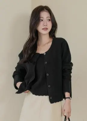 ラウンドネックボタンスクエアネックカラー無地カーディガンビスチェ