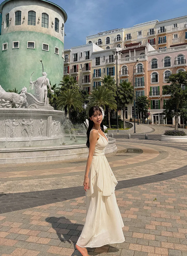 花柄リボンティアードキャミワンピース