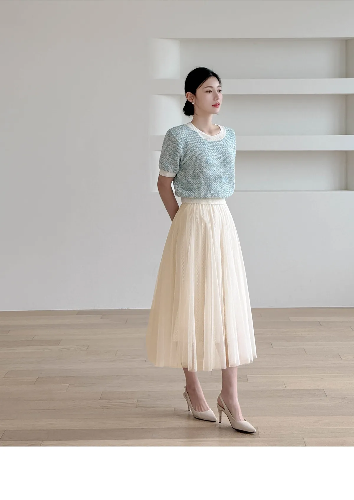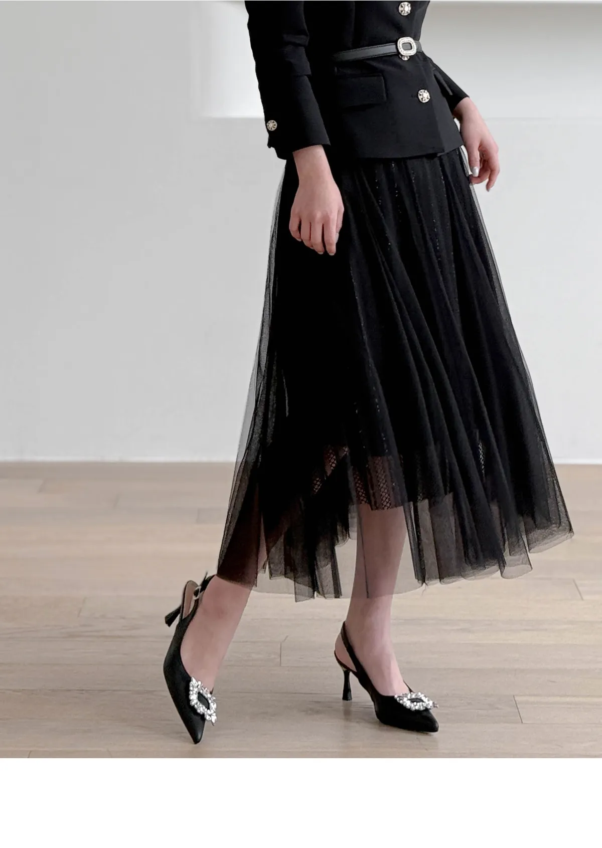 チュールプリーツロングスカート