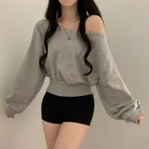 オフショルダークロップド長袖アイレットスウェット