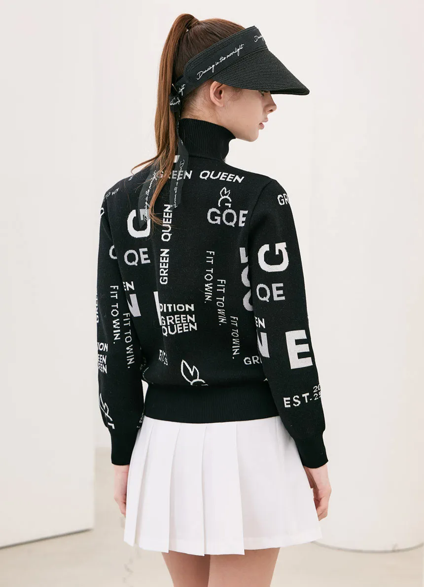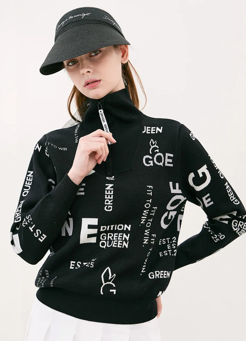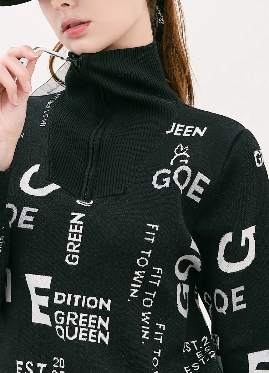 ハイネックハーフジップ英字パターンニット・p1905739