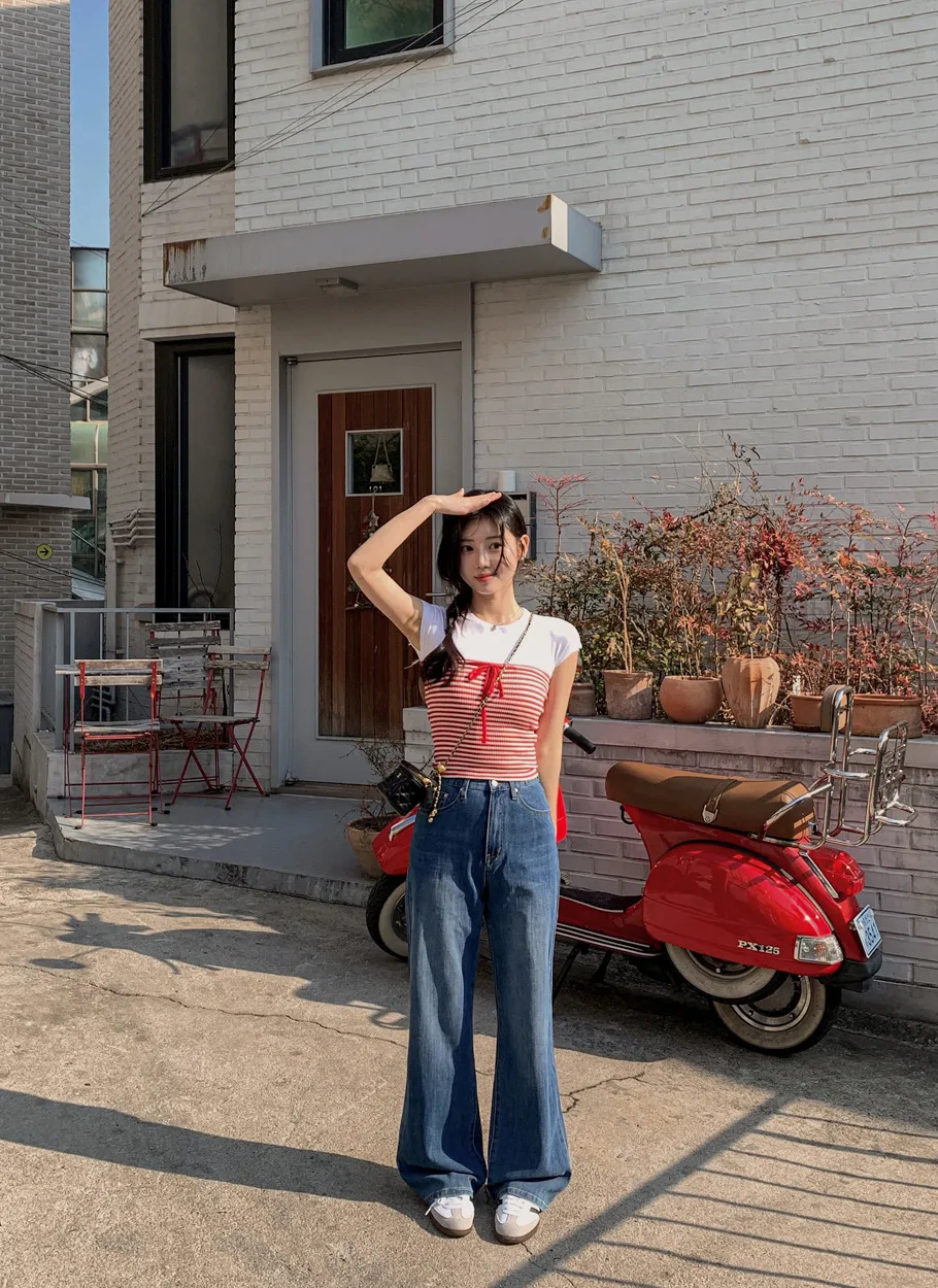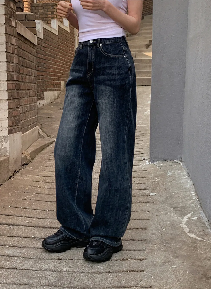 デニムベーシックショートループリベットジップアップリボン(固定)ワイドバックポケットポケットフラップポケットウォッシングディープブルーデニムパンツ[選べる丈]