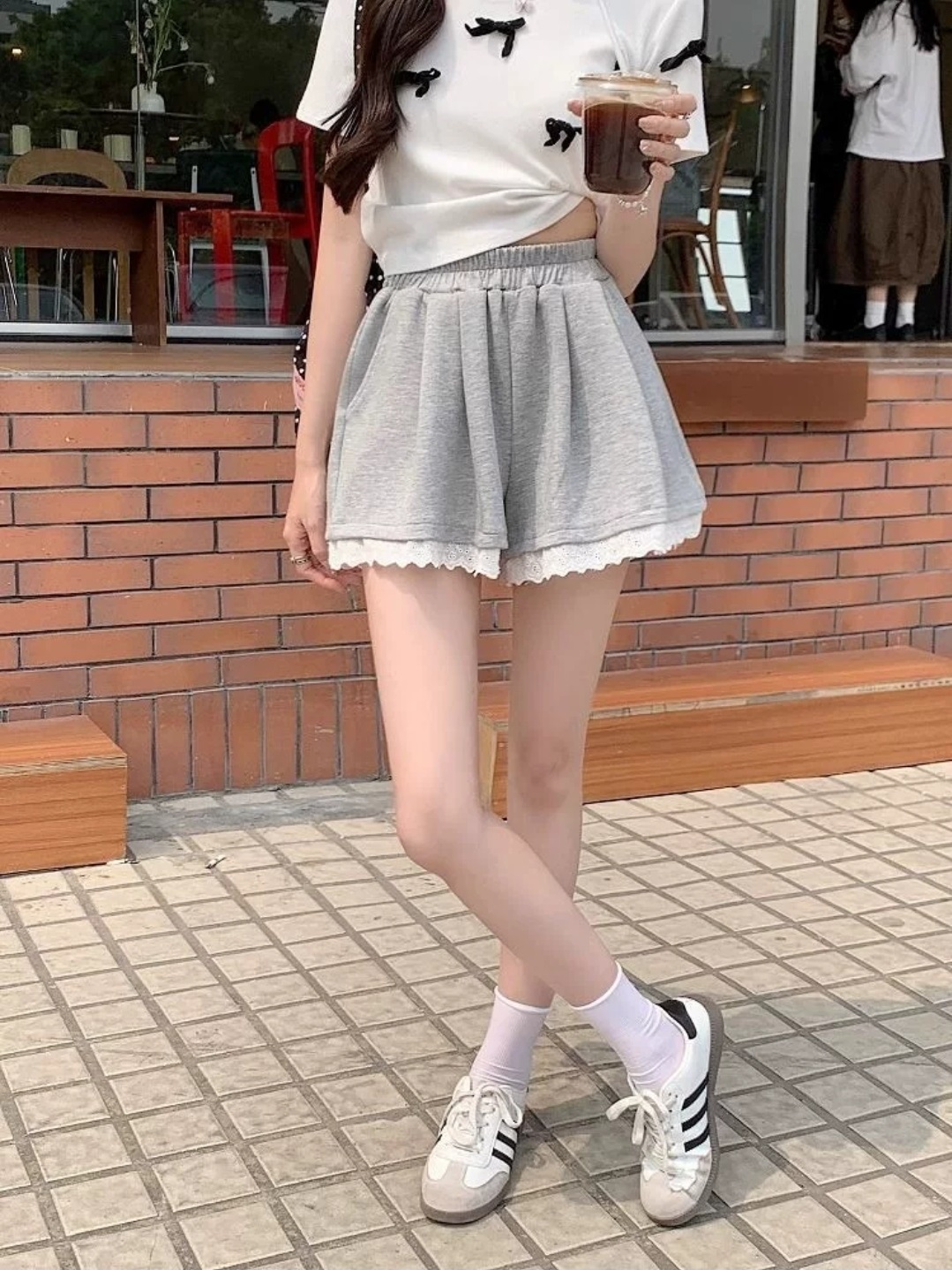 アイレットレースタックショートスウェットパンツ・B021734