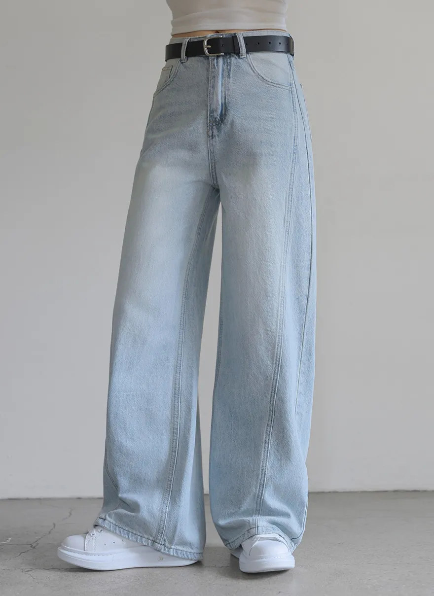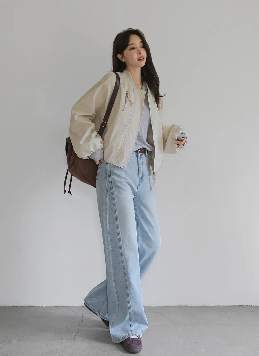 デニムベーシックショートループリベットジップアップリボン(固定)ワイドバックポケットポケットフラップポケットウォッシングディープブルーデニムパンツ[選べる丈]