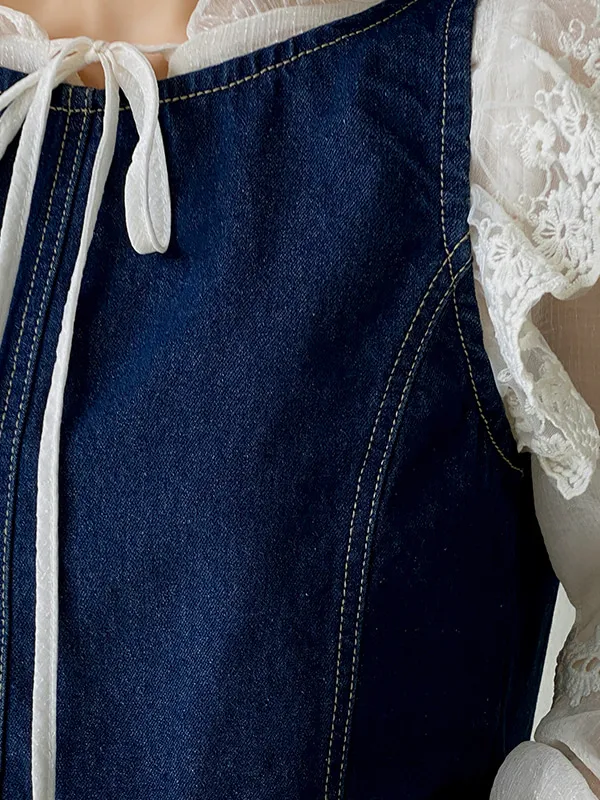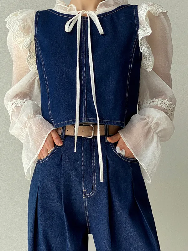 ステッチバックボタンデニムベスト・p1907707