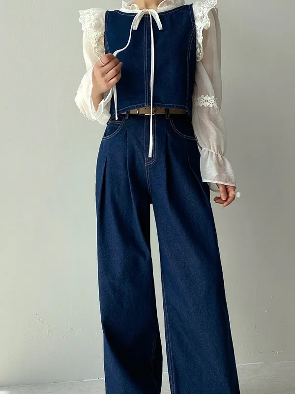 ステッチタックワイドデニムパンツ