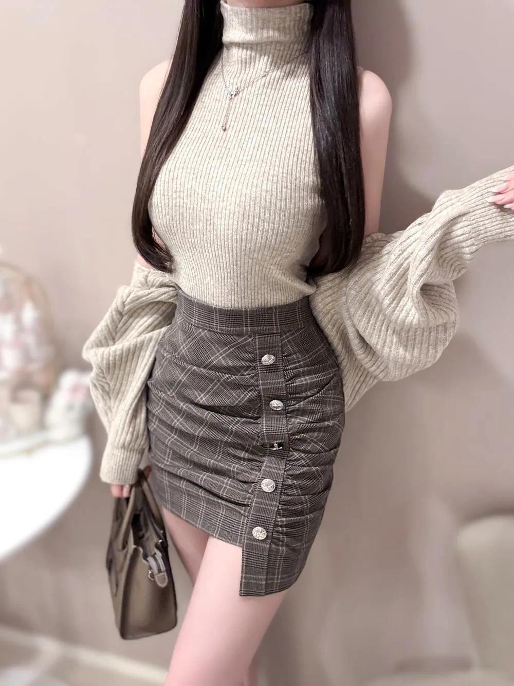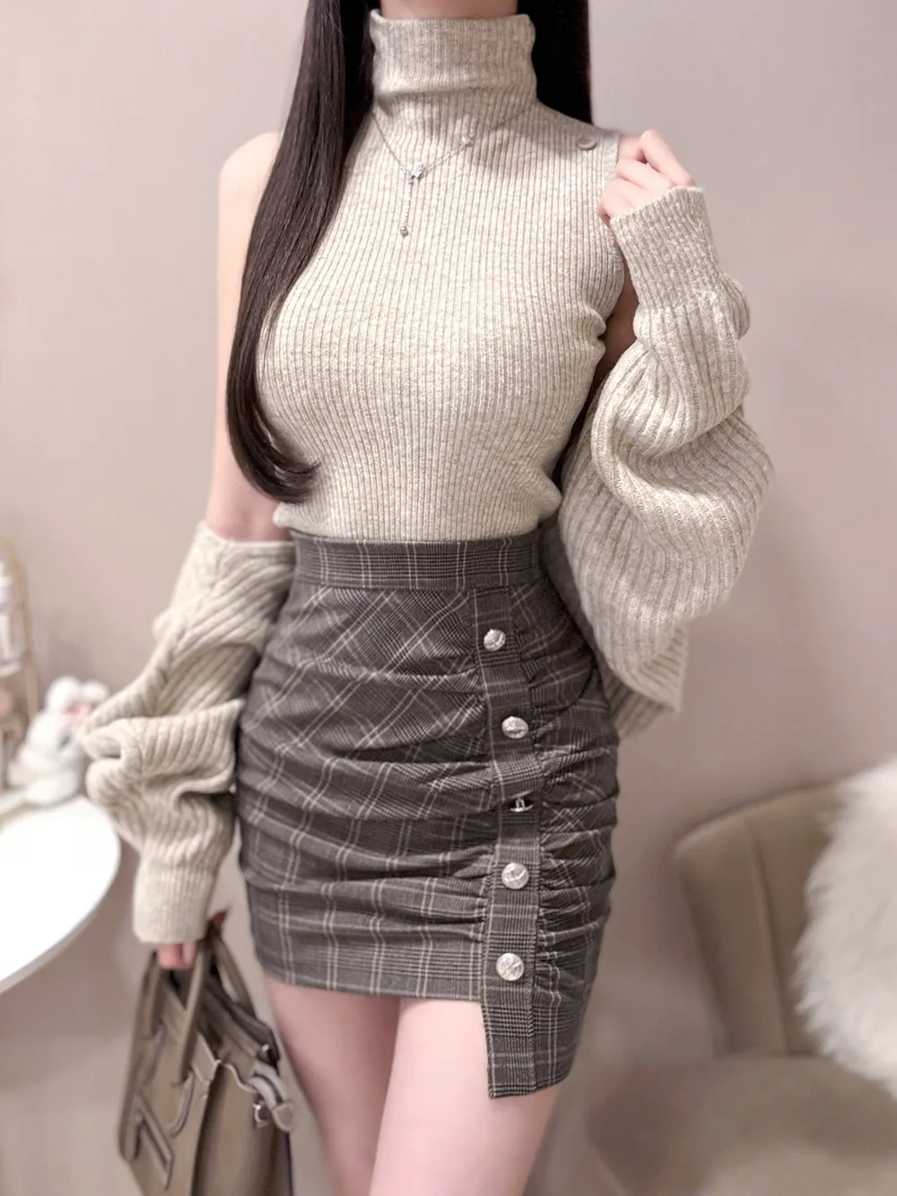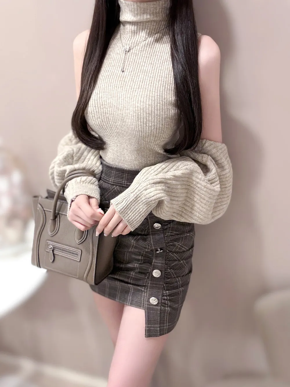 肩を落として着ると大人かわいい印象に。