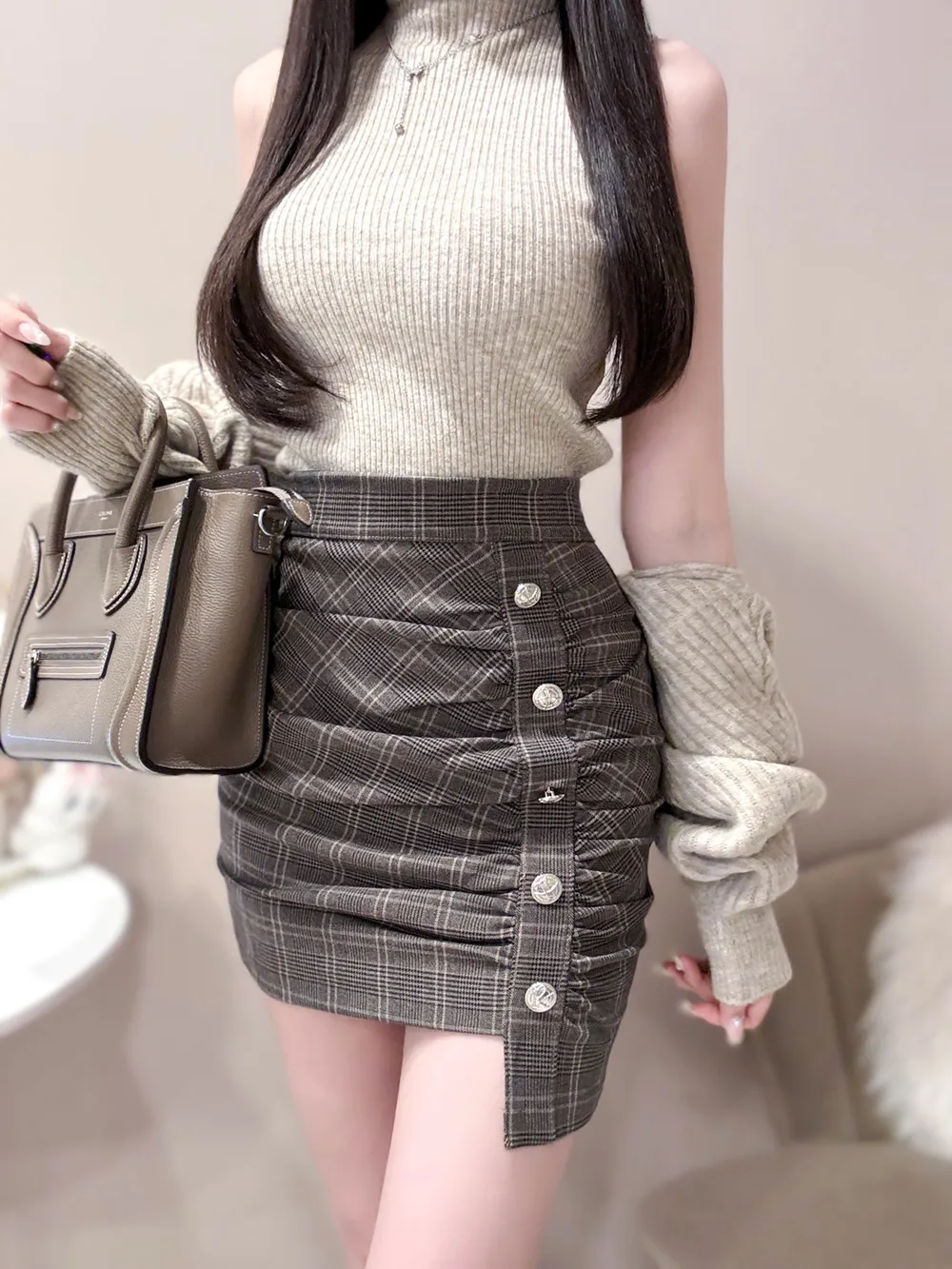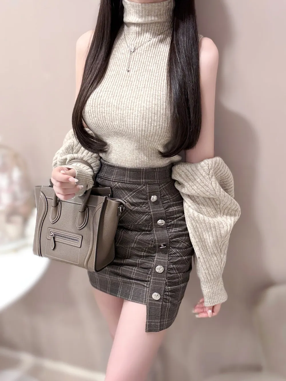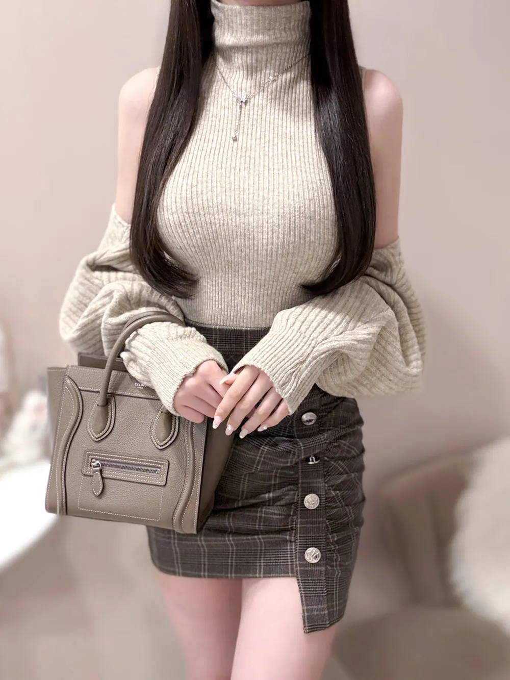 肩を落として着ると大人かわいい印象に。