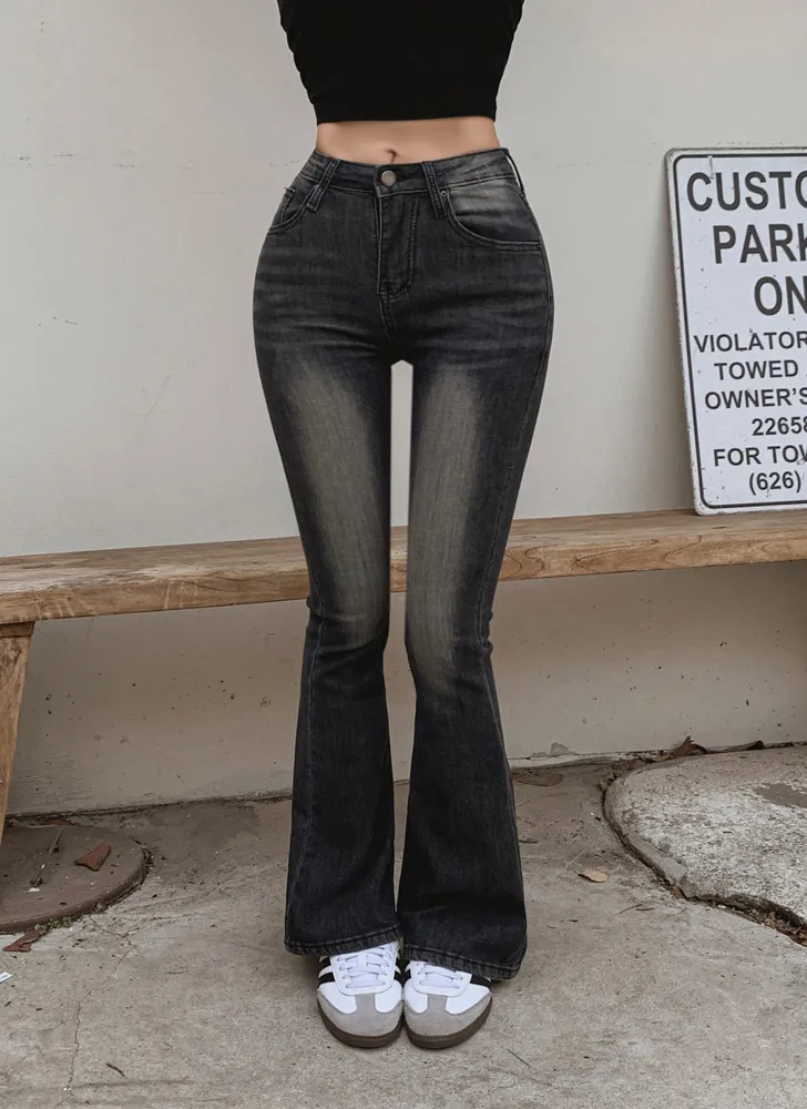 ストレッチデニムジップアップバックルウォッシングポケット骨盤パッドスリムロングフラップポケットリベットループバックポケットブーツカットライトブルーデニムパンツ